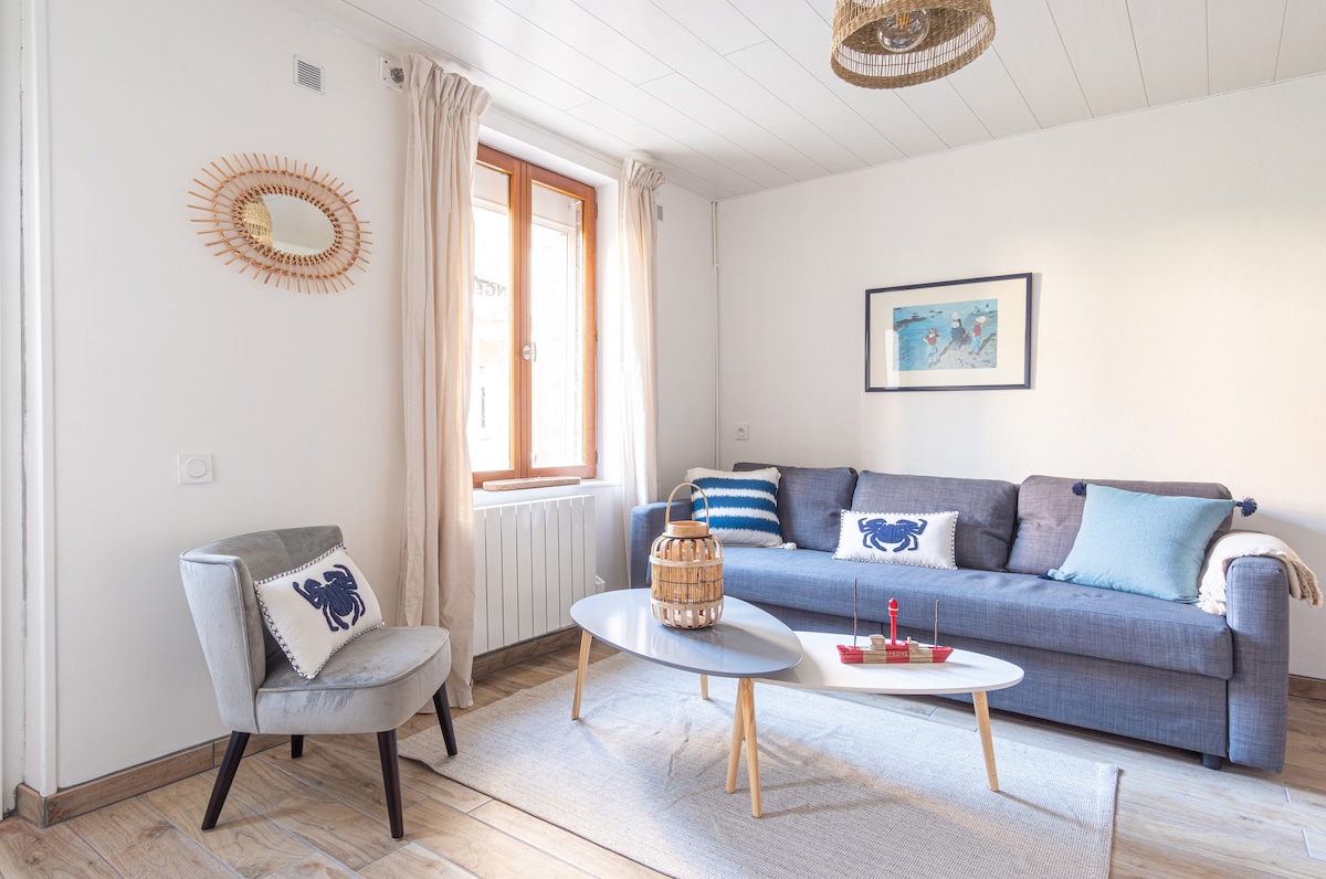 迷人而寧靜的漁民房子,經過全面翻修,在埃特雷塔( Etretat )中心、商店,距離海灘僅幾步之遙。 位於步行小巷中,您將享受這個地方的平靜和這棟帶露臺的現代化房屋的舒適性。 抵達時,我們會準備牀。提供浴室牀單,但不提供沙灘毛巾。 提供嬰兒牀。