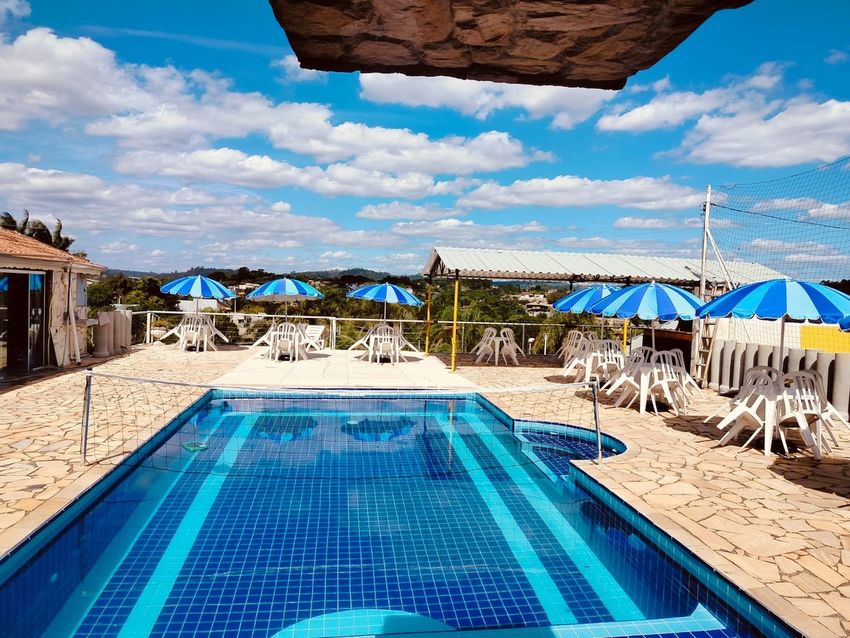 Relaxe com sua familia e amigos em um amplo espaço contando com casa sede com quatro quartos, sala 03 ambientes com lareira, Tv e internet Wifi. Área gourmet com churrasqueira, forno e fogão a lenha, salão de jogos com mesa de sinuca e ping pong; Piscina climatizada com aquecimento solar e uma vista panorâmica incrível! Espaço absolutamente perfeito para descanso mas também lazer e diversão! Lugar com muita privacidade, área verde, lazer e PAZ para sua familia! E tudo isso pertinho de SP =)