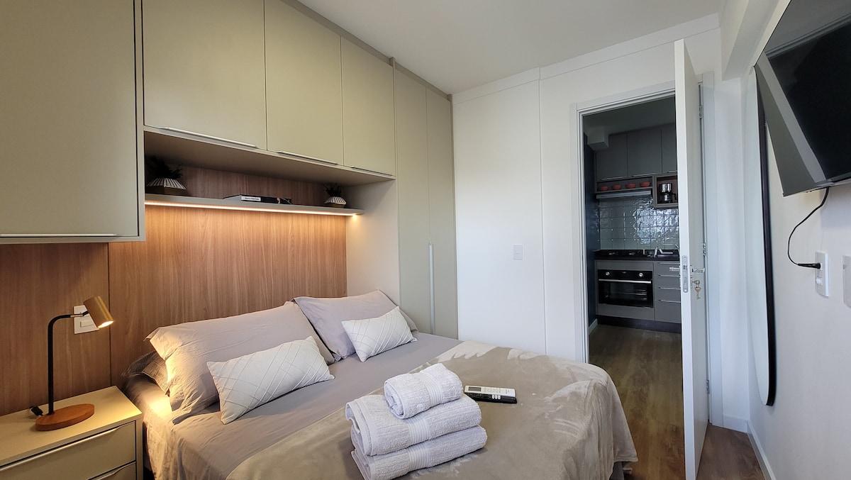獨特! (寵物友好) 公寓大樓,休閒和安全。 全新舒適的單間公寓,配有私人車庫、空調和網路(300MB)、42吋電視 + Apple TV + Chromecast、健身房、游泳池、會議室、共同工作區和Omo洗衣房。 地理位置優越,實用性和精緻度高。毗鄰購物中心、大賣場、Amaral Carvalho醫院和幾家酒吧和餐廳,步行即可抵達。