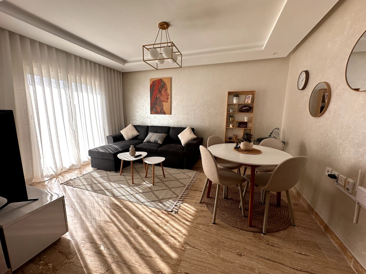 MERCI DE LIRE AVANT DE RESERVER Pour une expérience unique à Tanger, nous vous proposons cet appartement élégant aux couleurs sobres et épurées, en plein cœur de Tanger. A quelques pas des endroits branchés de Tanger, venez profiter du confort qu'offre cet appartement. Remarques importants: - Appart au 3ème étage SANS ASCENSSEUR. - Appart destinée uniquement à une clientèle familiale ou COUPLE MARIÉ et les amis non mixte.