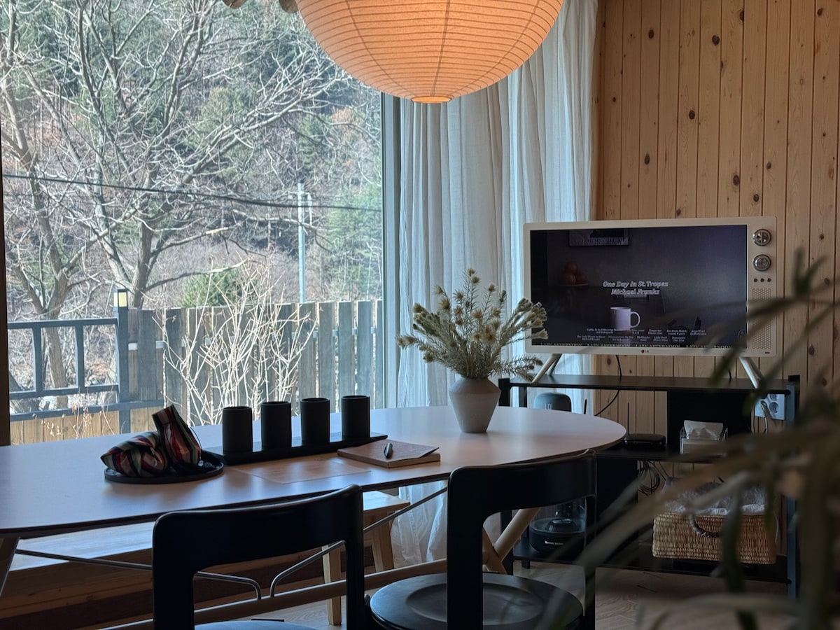 由韓國鄉村住宅的著名公司 Rohas 建造的 34 坪木屋,隔熱效果良好,住宿內的空氣讓您感到舒適。 使用德國式系統窗戶(伊根窗戶),夏季室內涼爽,冬季溫暖,住宿專用(400坪)正前方一級水谷(聖人深水量外嬰兒戲水場),可採摘覆盆子等。這將是一個可以遠離城市,真正放鬆身心,重新充電的空間,有精心種植的季節性花卉和樹木。 *一起生一堆橡木柴火, *一杯葡萄酒和 炭火烤肉(横城韓牛、海鮮等) *治癒水聲ASMR , *花園盛開, *下雪的景觀, * 觀星夜晚 *鳥鳴聲和陽光充足的露臺... *芬蘭桑拿 *我們的房源有很多季節性的房客,有些地方無法用照片展示,希望您能來欣賞和療癒自己^^