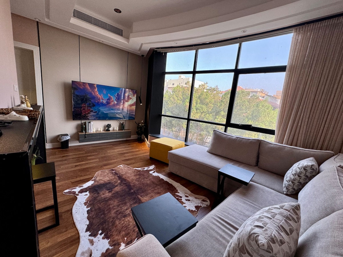 在吉達市中心享受寧靜的住宿,享受迷人的屋頂景觀、舒適的氛圍和城市上方私人綠洲的奢華感。 位於吉達市中心,可欣賞獨特的城市景觀。 靠近吉達的所有景點。 距離機場 10 分鐘。 以大自然精神設計,配有現代家具。 有一個98英寸的螢幕,適合電影院和體育迷。 您可以使用Choi的工具進行美妙的戶外活動。 擁有寬敞的空間,擁有完全的隱私和智慧通道。 祝您入住愉快。