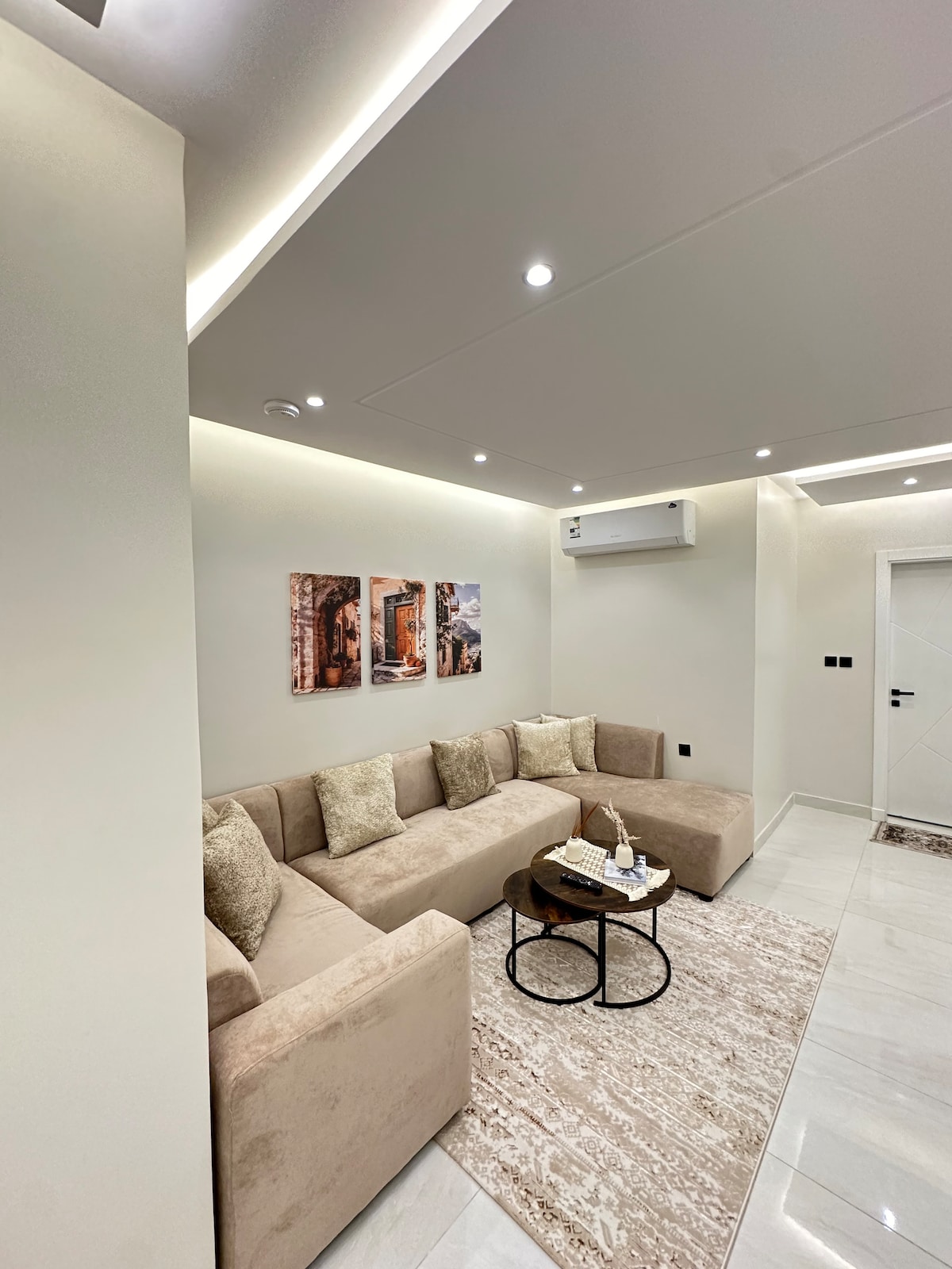 現代舒適的設🛋️計 • 精心佈置,營造出平靜舒適的氛圍。 • 柔和的燈光,非常適合放鬆。 🎨 優雅的裝飾,富有藝術感 • 現代畫作和地毯增添獨特的美感。 • 每個角落都有和諧的色彩和現代感。 飯店🛏️臥室 •舒適的床鋪,乾淨的床單和有助於深度睡眠的氛圍。 完美的寧靜🌙氛圍 • 適合短期或長期住宿。 •為喜愛寧靜和寧靜的情侶提供隱私和舒適。 特色📍地點 •公寓僅約15分鐘車程。 公寓距離Tahlia街僅約7分鐘