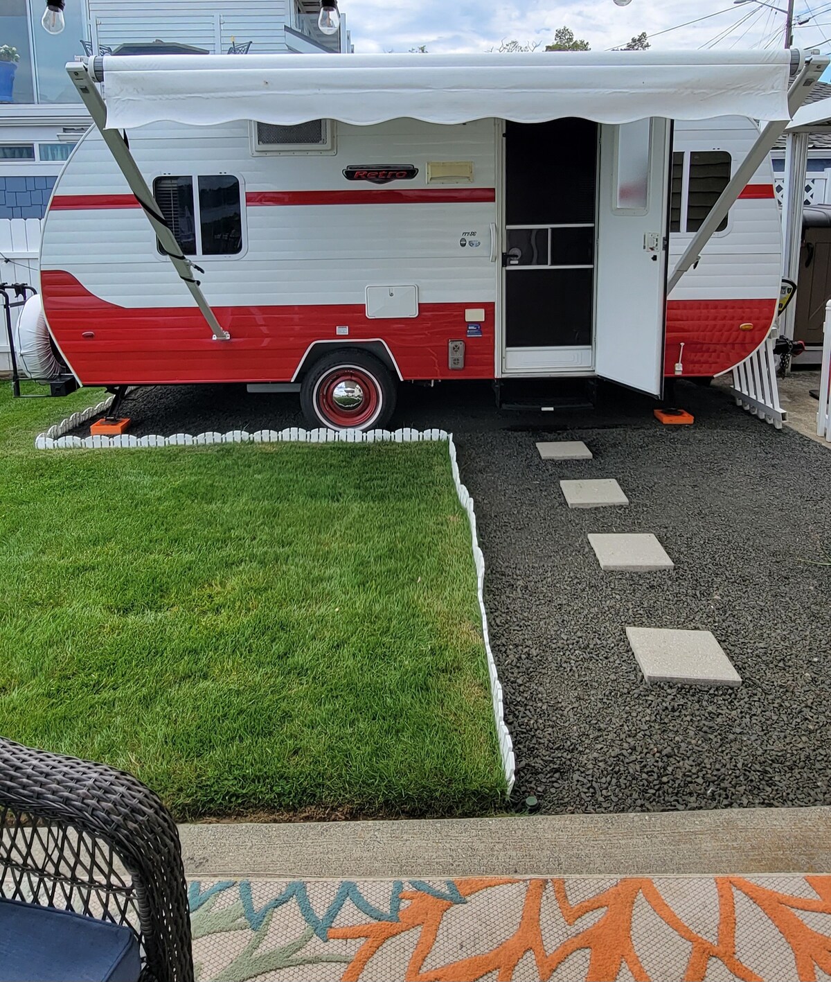 待在這間獨特房源的時光將讓你永生難忘。我們有一輛37英尺寬敞的1間臥室5輪旅行拖車,最多可容納6位房客。 臥室有一張舒適的加大雙人床、梳妝台、寬敞的衣櫃和32吋 電視。廚房配有爐子、烤箱和全尺寸冰箱。 客廳可容納6人,一張沙發可躺下,配有按摩和暖氣功能。它就像在家一樣,設備齊全。這是您的第二個家。距離美麗的海灘30分鐘,距離福克斯市中心0.3英里。
