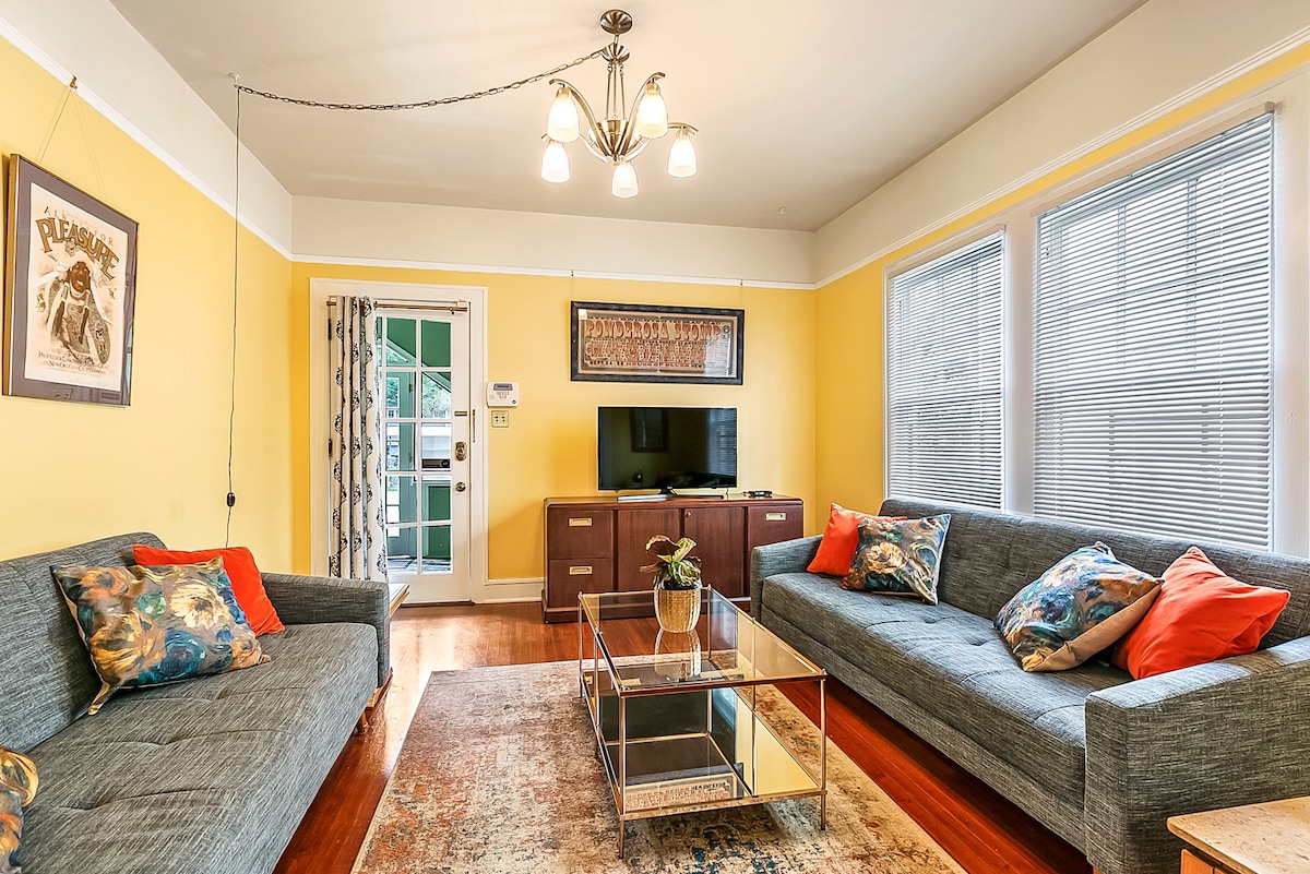 明亮通風、色彩繽紛、舒適、超級乾淨的單位,位於紐奧良市中心!整個一樓(地面)單位距離歷史悠久的St. Charles Avenue電車線和橡樹林立的Napoleon Ave! 步行即可抵達許多餐廳、酒吧、咖啡廳和令人驚嘆的葡萄酒市場,步行5分鐘即可抵達。開車10-15分鐘或悠閒地乘坐電車即可抵達法國區、花園區、大學和奧杜邦!