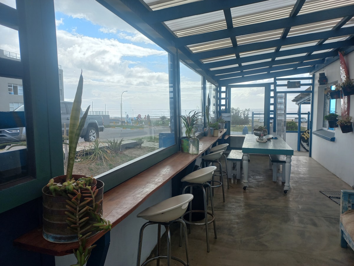 漂亮的私人單間公寓,靠近主屋,自助餐廳。全套公寓的一間房間、雙人牀、浴室、配有小廚房、冰箱、微波爐、小型兩個廚具和所有烹飪用具、餐桌、配有Braai/燒烤的私人娛樂區域。 最多可入住兩人。距離沙灘100英尺,前面有很棒的衝浪場地,步行很長。 步行前往餐廳和商店。在小鎮中心。WiFi未封裝。
