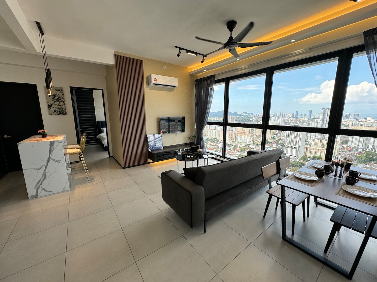 我們的2間臥室舒適套房位於槟城市中心,可輕鬆前往當地旅遊景點。就像入住飯店一樣,享有按摩椅、廚房、洗衣房和可愛的城市景觀。非常適合情侶、商務差旅人士和小家庭。 如果您餓了,別擔心,日式/韓式餐廳和7-11就在樓下。步行5分鐘即可抵達當地美食、OldTown、披薩、肯德基。 如果您喜歡這個繁忙城市中的安靜舒適的地方,您一定會喜歡我們的地方!