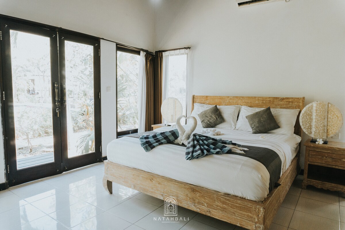 我們的豪華客房位於村莊的稻田中,距離海灘和Medewi Point Break僅1公里,讓您自由散步。 在寬敞的雙人床或舒適的閱讀角落放鬆身心,周圍有足夠的儲物空間,讓您放下行李,並有一張辦公桌,讓您可以處理任何可能帶來的工作。 套房浴室可俯瞰周圍的稻田,而您的私人露臺則可欣賞稻田和花園的景觀。 WiFi、熱水淋浴和空調是標準配備。