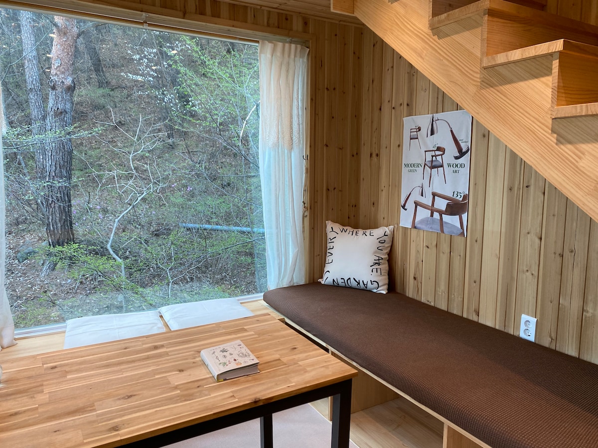 @hug_writers_studio 로 연락주세요 참나무들 사이에 둘러쌓여있는 숲속의 작은집입니다. 복잡한 걱정들은 뒤로 하고 숲을 바라보며 새소리, 물소리를 들으며 보내는 따뜻한 하루를 보내보세요 *원래는 작가님의 개인 작업실 공간이었습니다. 미비한 만큼 저렴한 가격에 올려둡니다! 이 점 유의해주세요! *조용히 머리를 식히실 분에게 적합합니다. *체크인 4시 체크아웃 11시 *조리 불가능 *미니 냉장고 있습니다, 물은 사오셔야합니다. *워시 제품은 챙겨와주세요! *바닥난방과 히터 됩니다! *온수는 순간 온수기를 사용하고 있습니다. 오래 씻으시는 경우에는 한 분 샤워 후 15분 정도의 텀을 두고 씻으시는걸 추천합니다. *깊은 산 속에 있는 만큼 벌레가 들어올 수 있습니다. 이 점 양해 부탁드립니다!