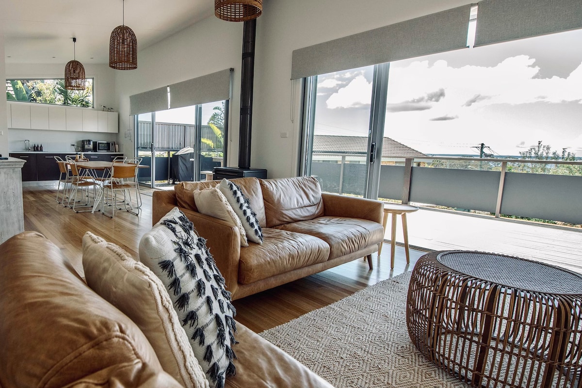 我們的房子坐落在海姆斯海灘村的安靜角落,非常適合放鬆的家庭度假或情侶入住。剛剛完成全面翻新,配有新廚房、空調/暖氣、2間浴室和有頂露臺。欣賞壯麗的海景和叢林景觀,距離海灘和國家公園步道僅幾步之遙。非常適合放鬆和冒險。享受NBN WiFi、Netflix、BBQ和海風等舒適設施。在我們設備齊全的度假勝地,體驗海邊寧靜與自然美景的完美融合。