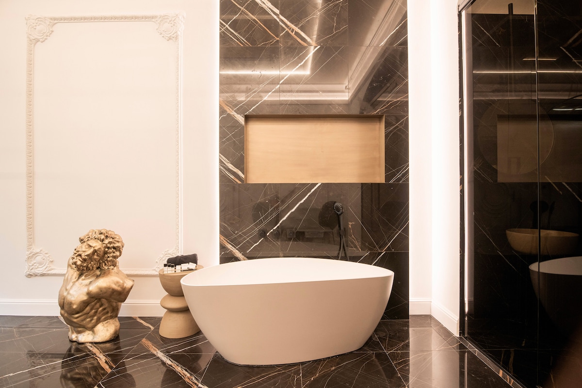 布拉格古城區獨特的古董風格公寓。保留了裝飾模塑等原始元素,結合大理石、玻璃、木材等現代材料。我們喜歡地板上的稀有黑色橡木,窗戶和入口周圍的黃銅裝飾。古董風格由古代神像和小古董頭像畫作補充。 請查看我的個人資料,不要錯過我們的其他特殊住宿。