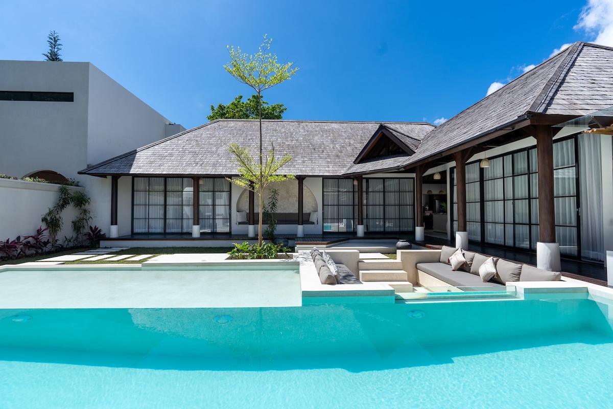 金巴蘭海灘( Jimbaran beach )旁邊的全新豪華泳池別墅,免費輕鬆前往機場。 家具和設備齊全,裝飾有原始的巴釐島藝術品。 私人10公尺泳池、WiFi、Netflix、環繞音響娛樂系統、洗衣房。 整棟別墅都配有空調。 品嚐當地海鮮,欣賞令人驚嘆的日落,或在泳池邊放鬆身心。 附近有很棒的餐廳和酒吧,沒有庫塔( Kuta )、水明漾( Seminyak )和勒吉安( Legian )的交通堵塞。