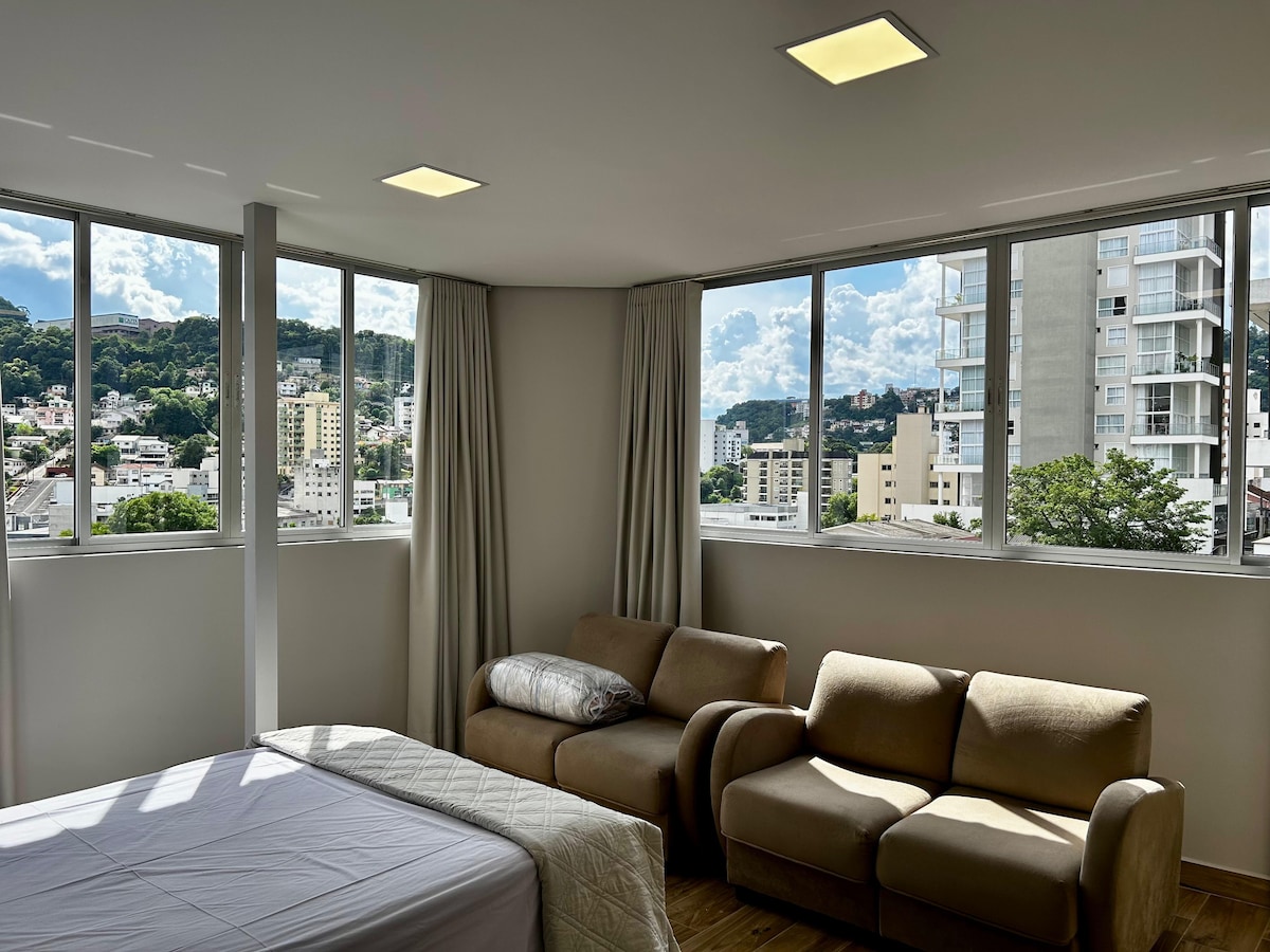公寓地理位置優越,可俯瞰Joaçaba市中心的全景。 靠近您需要的一切: 超市(建築地面) -藥店( 5公尺) -醫院HUST ( 140公尺) -健身房( 30公尺) - Banco ( 36公尺) 聯邦收入( 99公尺) -中央公園( 800公尺) - Universidade - UNOESC ( 1.7公裏)