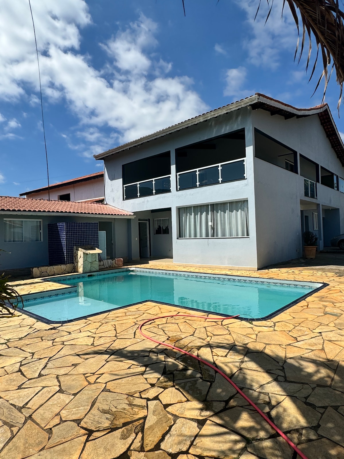 A casa fica a poucos metros da represa de Piracaia Lugar tranquilo e silencioso. A diversão é garantida com piscina aquecida, pingue-pongue, futmesa, pula pula, sinuca, caiaque e stand up disponíveis. A área Gourmet é equipada com máquina de gelo e frigobar *NÃO ALUGO PARA EVENTOS 4 dormitórios sendo 2 suítes Ofereço como Cortesia: roupa de cama *Acima de 15 pessoas, temos a taxa de hóspede adicional, podendo fechar em até 20 pessoas* Devido a falta de cuidado dos donos não aceitamos pet