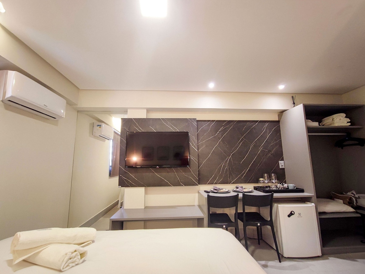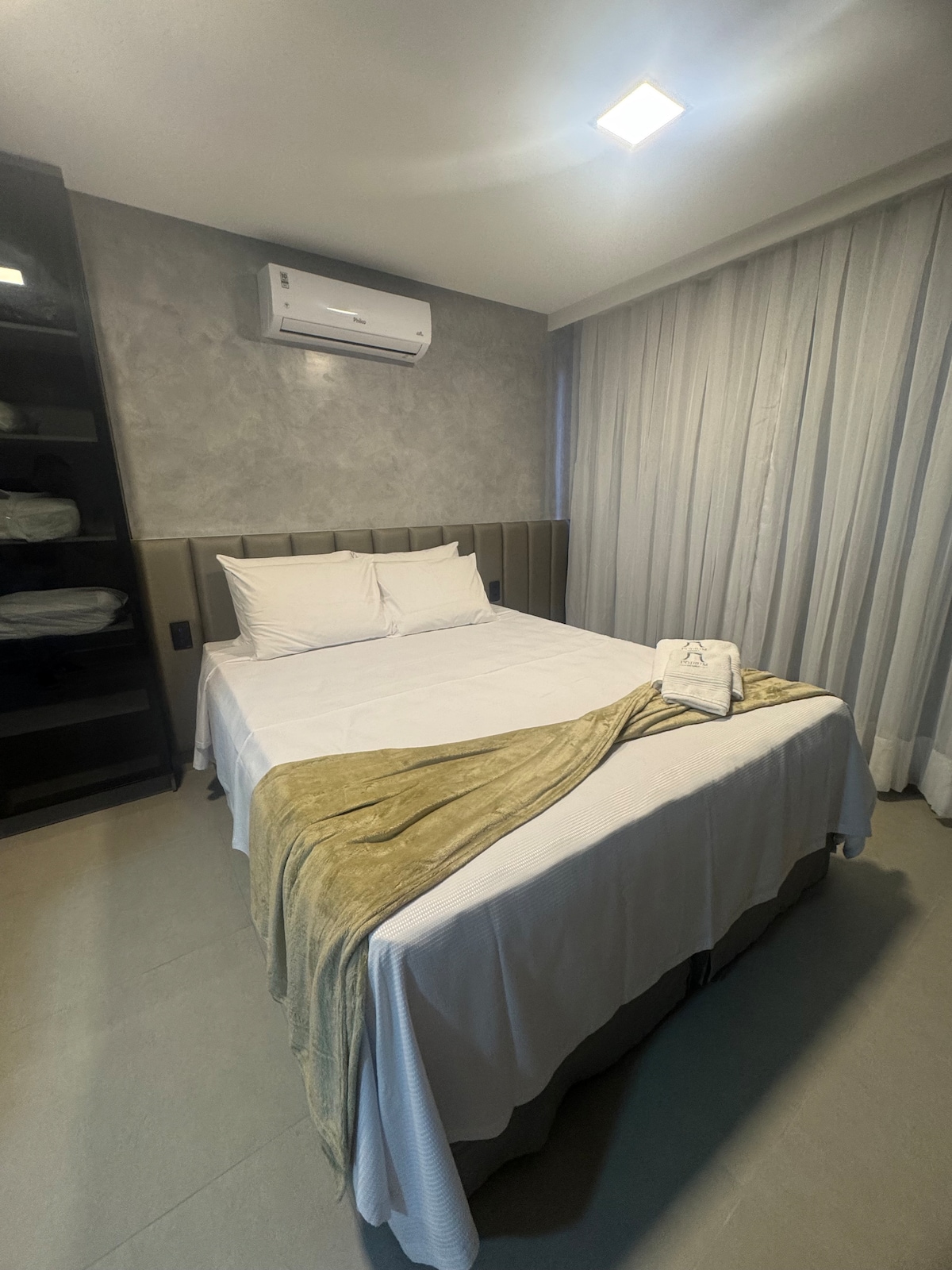Studio diferenciado com 31 m², acima do padrão do condomínio, totalmente projetado com iluminação planejada e espaços bem aproveitados. Possui varanda com vista definitiva para o mar, a poucos metros da praia de Cabo Branco. Acomoda até 4 hóspedes, com cama Queen e sofá-cama, além de ar-condicionado e Wi-Fi. Condomínio estilo resort com piscina, recepção 24h, café da manhã opcional e garagem rotativa, em excelente localização.
