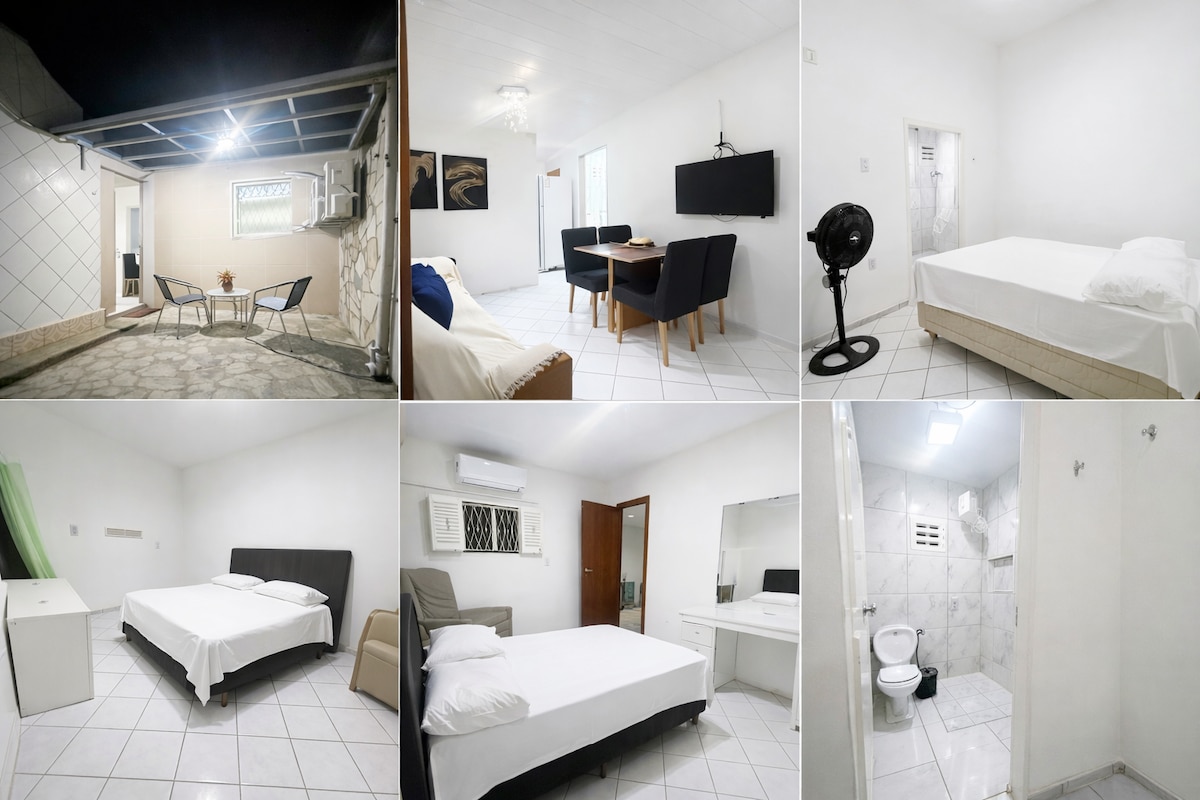 探索Tambauzinho!非常適合情侶或單身人士尋找位於市中心的房間,開車前往海灘( 5分鐘)和整個城市(距離市中心9分鐘)都很方便。 安靜的家庭區,靠近文化空間,有音樂會、工作坊和展覽。 設備:迷你吧、空調、微波爐、水槽、無障礙浴室、雙人床、書桌、電視和WiFi。 獨立外部入口,確保您的隱私。 停在附近的街道上或軍事村內,有24小時監控。