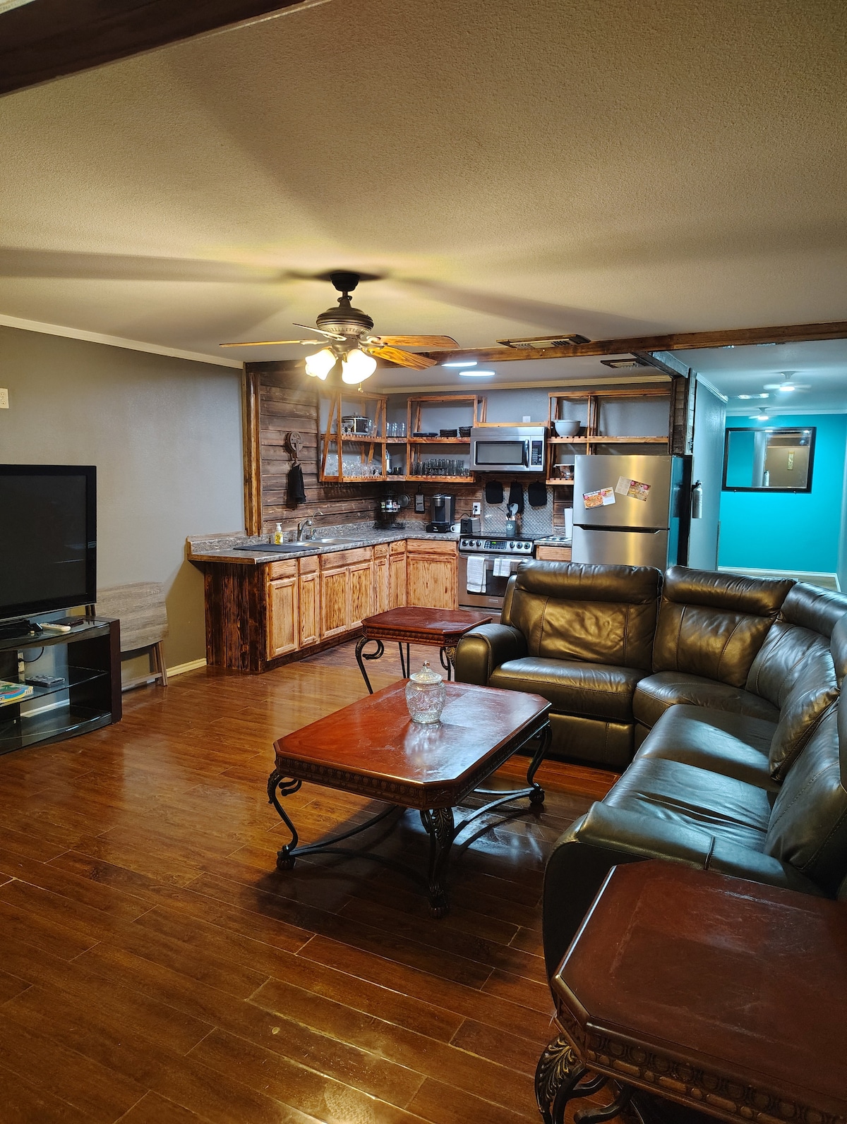 Kick back and relax in this calm, stylish space. very unique and very spacious! enjoy the full kitchen making your favorite quizines, or enjoy a hot spa-like shower in a custom BUILT bathroom.