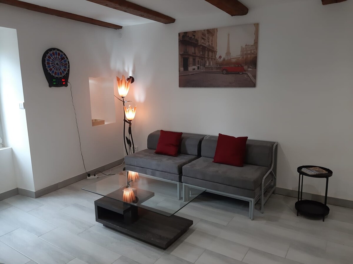 位於大自然的中心,花園底層公寓,三星級,坐落在田園風光中,距離高速鐵路車站、A36 高速公路和北弗朗什-孔泰醫院僅幾分鐘路程。 您會發現一個明亮的主房,可容納兩人,配有廚房,備有烹飪所需的一切,還有一個電視休息區、一間臥室和一間獨立浴室。您將擁有一個停車位和一個私人露台。