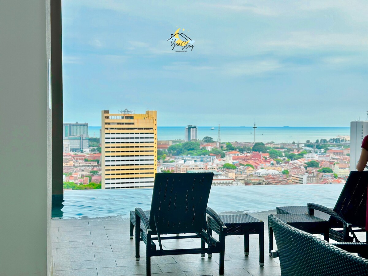 2 間臥室/6 人/海景/Mahkota/步行即可抵達Jonker、商場和MMC