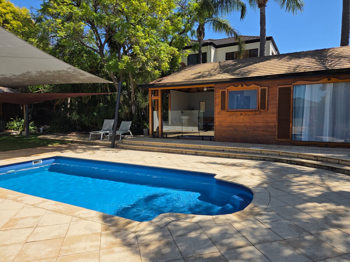 在這間完美的海灘邊住所中舒適而時尚地放鬆身心。呼吸海洋空氣,享受花園露臺和烤肉,或走出前門,享受標誌性的城市海灘、當地咖啡廳和餐廳、公園和海濱木板步道。開車10-15分鐘即可輕鬆抵達中央商業區。 我們非常喜歡在新的海灘別墅接待房客。作為在旅宿業工作的屢獲殊榮的建築和室內設計師,我們設計了私人公寓,提供放鬆的度假勝地,帶給您家一般的舒適享受。 休閒度假村風格的住宿設施齊全,非常適合商務、度假旅客和家庭放鬆身心,享受美麗的海濱位置。 現代海岸風格的裝飾和住宿包括: 主臥室配有雙人床、床頭櫃、控制台、休閒椅和大型衣櫃。 超大臥室,配有兩張單人床、床頭櫃、儲物櫃和大衣櫃,配有玩具儲物櫃和兒童玩耍的空間。 時尚的現代浴室,配有盥洗台、儲物空間和淋浴間。 寬敞明亮的開放式設計,配有豪華裝潢 全套美食設計師廚房,配有歐式電器 四人餐桌/用餐區 超大休息區,配有大型電視/DVD NETFLIX 和 WiFi 當地藝術家Stephen Draper的原創藝術品。 書房角落和辦公桌,配有置物架和移動底座-如果您真的需要工作! 僻靜、翠綠的熱帶花園露臺,配有戶外用餐和燒烤設施,讓您享受壯觀的日落,並享用一杯安靜的葡萄酒,聆聽衝浪的聲音。生活真好:) 我們的房客有自己的獨立前門,可隨意進出,並可獨立使用所有住宿。 可安排使用我們的泳池和泳池房屋甲板。 我們將親自歡迎您,並提供我們對當地餐廳、酒吧、娛樂、運動和購物設施的建議。以及參觀感興趣的地方+與孩子一起做的事情!-我們可以提供自行車、衝浪板、雨傘、沙灘毛巾、水桶和鏟子。我們只需一通電話,通常可以協助您有個愉快的住宿體驗。 我喜歡南城海灘悠閒、友好的海濱氛圍!步行兩分鐘,您就可以在沙灘上漫步。有很多餐廳可供選擇,附近有24小時營業的美食超市,前往CBD、Freo和Kings Park也很方便。 巴士站距離我們的房子100公尺( 82路巴士) , 30分鐘即可抵達市中心。巴士停在Subiaco ,您可以在那裡搭乘火車前往市區、伊麗莎白碼頭、克萊蒙特、科特斯洛和弗里曼特爾的漁港,或壯觀的新Optus足球場和皇冠 賭場和度假村。提供街外停車位,如果您的住宿時間超過幾天,我們建議您考慮租車。如果有空,我們很樂意在路上讓您下車,或者您可以使用Uber。 單層開放式起居區,兩步即可抵達洗衣房和浴室。 我們運作一個生物化學水處理系統,即每3-4次使用浴室,泵將運作3-4秒,並有輕微的殘留噪音。