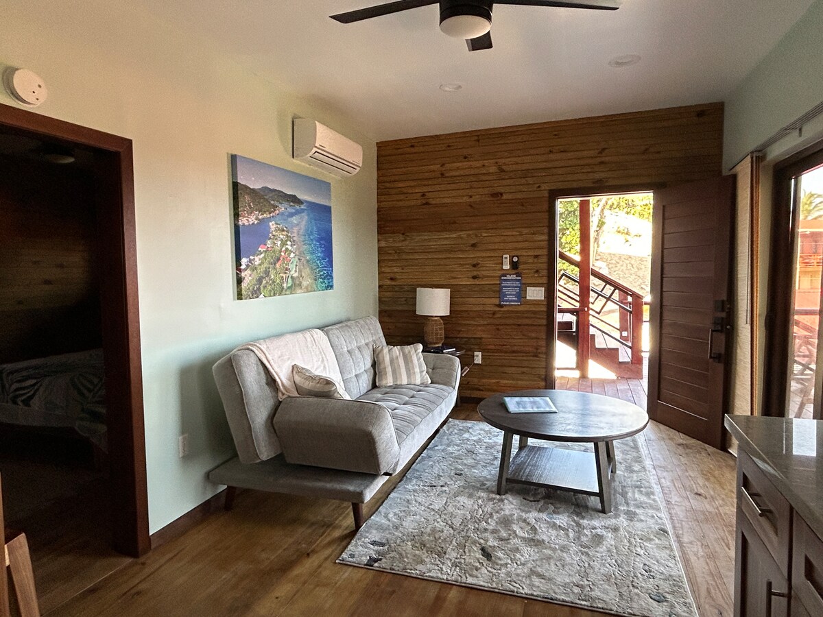 Rainbow's Breeze是一間舒適、無樓梯、無障礙、1間臥室的公寓,位於北岸的羅阿坦東端。 客廳和大型遮蔽露臺可俯瞰珊瑚礁和碧綠的海洋。 臥室和客廳的空調使用需額外收費。 空調使用費用將在住宿結束時以現金支付,並根據空調的獨立儀表計算。 房源設有全圍欄,配有自動開門器。 公寓入口旁邊有私人泊車設施。