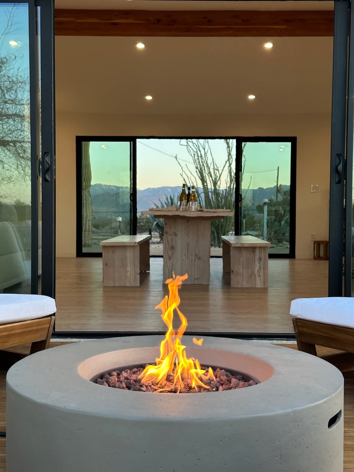 SaguaroHaus 是一間現代有機住宅,與沙漠景觀融為一體,將室內與戶外生活無縫接軌。 從廚房到衛浴間,白色混凝土打造出一個空間,而天然木質裝飾則為每個房間增添了一絲輕鬆的居家感。 這間房源以經典的加州風格設計,配有令人驚豔的相框窗戶和大型玻璃滑動門,四周是寬敞的露台,讓你可以欣賞星空,並感受約書亞樹的魅力。 這正是你想要的沙漠住宿!