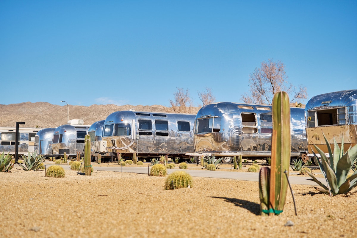 入住時尚的2019 Airstream Sport 22英尺,將復古魅力和現代舒適感融為一體。 最多可入住3位房客,配有舒適的全尺寸床、可轉換的餐桌和小廚房,配有爐台、冰箱和水槽。 享受獨立衛浴、空調、暖氣和配備全景窗戶的時尚設計。 位於度假村,設有季節性溫水泳池、俱樂部和火坑,距離舊城區Yucca Valley、Pioneertown和約書亞樹國家公園僅幾分鐘路程。 完美的豪華露營之旅正等著你