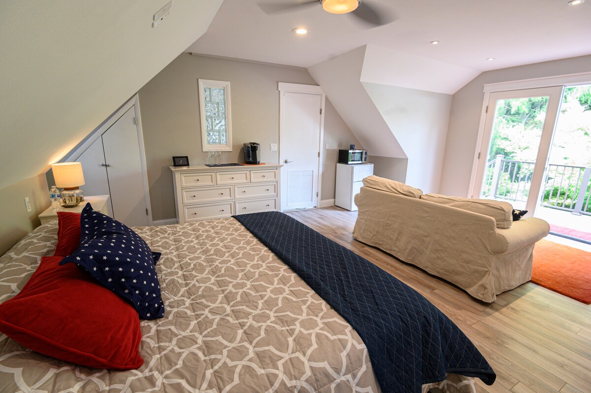 SuiteDreams 等著您!在我們的私人豪華舒適的單間公寓放鬆身心。距離酒莊和聖米歇爾酒莊音樂會只有幾分鐘路程。快速高速公路可讓您快速前往西雅圖。獨家享用;有火坑的門庭院、有戶外用餐區的露台。穿著舒適的毛絨長袍放鬆身心。在雙人床記憶海綿床墊上深度睡眠。設備:私人全套浴室、工作/用餐吧、迷你冰箱、微波爐、咖啡機、大螢幕電視、高速網路、附近的自然步道。