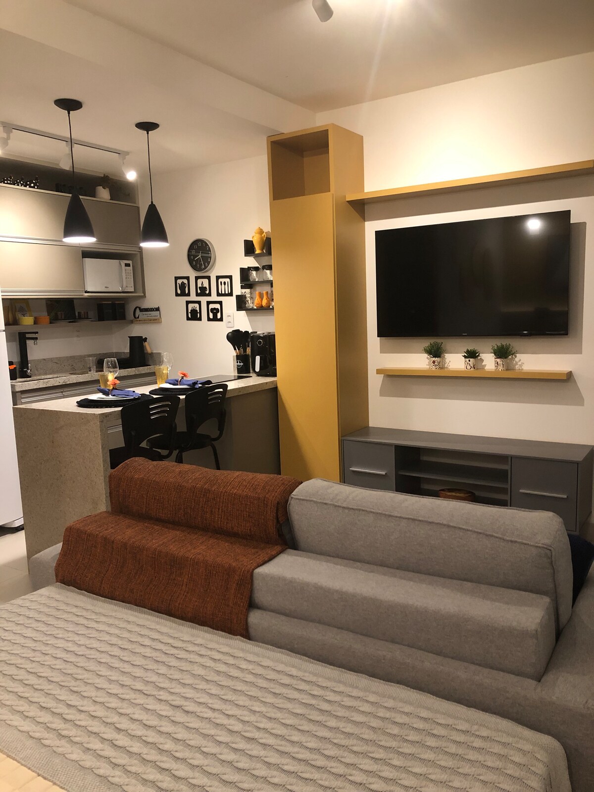 Loft in the São Pedro neighborhood, great location, 690 feet from the north gate of UFJF, with covered parking garage and electronic gate, 500 Mbps Wi-Fi, most popular video streamings and an Alexa with Spotify Premium available, as well as hair dryer, iron, Air Fryer, coffee maker, sandwich maker and everything else you need for a comfortable stay. Discounts available for 7+ nights stays and a special 35% discount for 28+ nights stays.