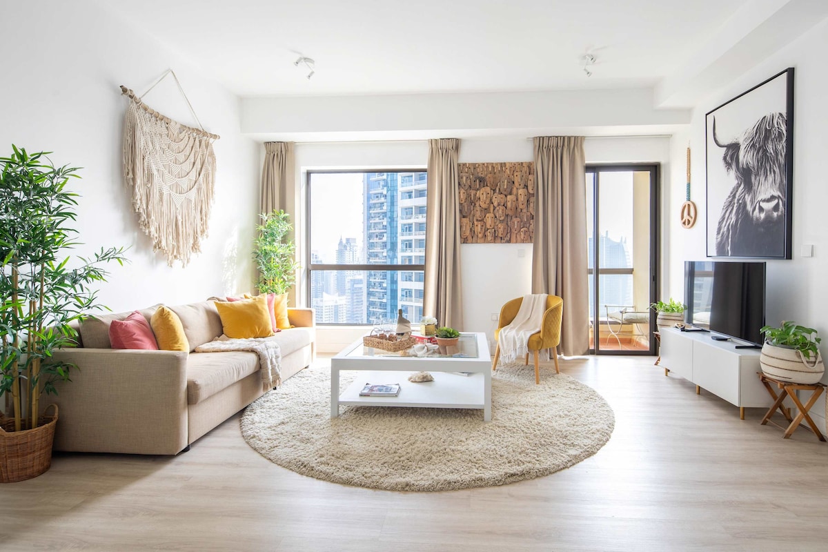歡迎來到JBR市中心的海濱度假屋! 這是全新翻修的1830平方英尺2 BHK公寓,配有高端設計師裝飾。 所有房間都可俯瞰藍水島( 🏝️ Bluewaters Island)、迪拜之眼( 🎡 Dubai Eye)、阿拉伯海( 🌊 Arabian Sea)和棕櫚島( 🌴Palm Jumeirah)的最佳景觀之一 著名的JBR海灘和步行道就在您的腳下。 您將被該地區最好的餐廳、咖啡廳、海灘俱樂部和商店包圍,您需要的一切都在幾步之遙 你將入住正確的地方!