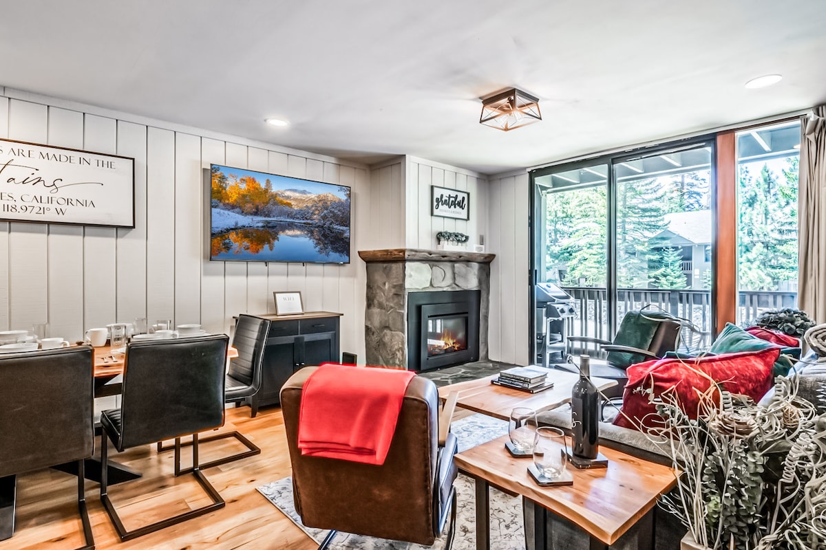 在這間位於 Mammoth 的精美翻新、完美位置的公寓與全家一起共享天倫時光或浪漫度假。樓下,角落單位:全新木地板、定制浴室和廚房。高科技、新電器。舒適的真實木製壁爐。淋浴間/浴缸。加大雙人床/拉出式泡綿雙人沙發。步行3分鐘即可抵達村莊,穿過街道即可抵達山區和其他城鎮。在全新舒適的傢俱、智慧電視上放鬆身心。大樓內有社區按摩浴池/桑拿房。