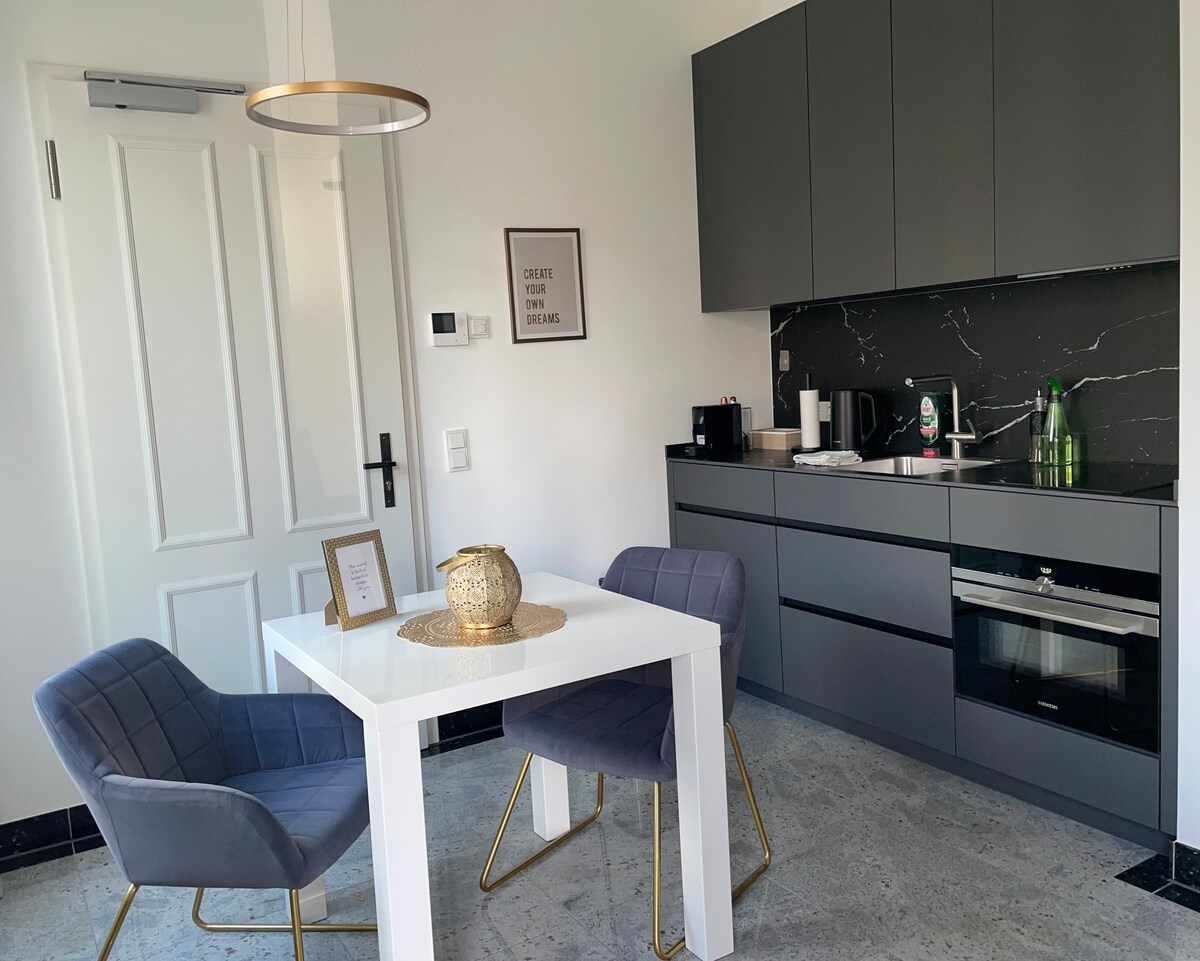 Welcome to this unique carriage house (90sqm). Built in 1922, it has been carefully restored and converted with high-quality materials. This romantic remise is located on Potsdam villa premises featuring old fruit and walnut trees, directly at the shore of Jungfernsee. In the summer, you can enjoy a swim in the lake before breakfast, if you wish. Only a stone’s throw away from the world-famous Glienicke Bridge. For decades during the Cold War, the bridge was the place where spies were exchanged.