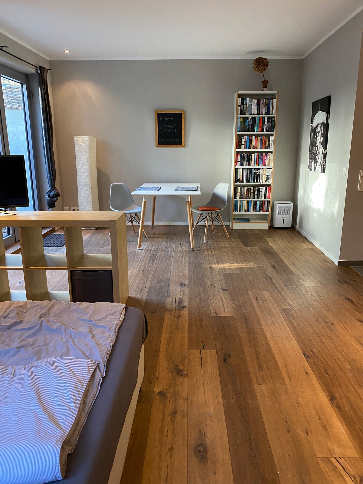 Meine Gästewohnung bietet auf 45 m2 Platz für 2-4 Personen. Sie ist gemütlich-modern eingerichtet und lädt zum Verweilen ein - so sagen es meine Gäste :-). Nach einem langen Ausflugstag ermöglicht einem das separate Schlafzimmer etwas Rückzug. Die Wohnung verfügt zudem über eine eigene Küchenzeile und ein Duschbad. Bei mehr als zwei Gästen kann das Schlafsofa zu einem Doppelbett umgebaut werden.