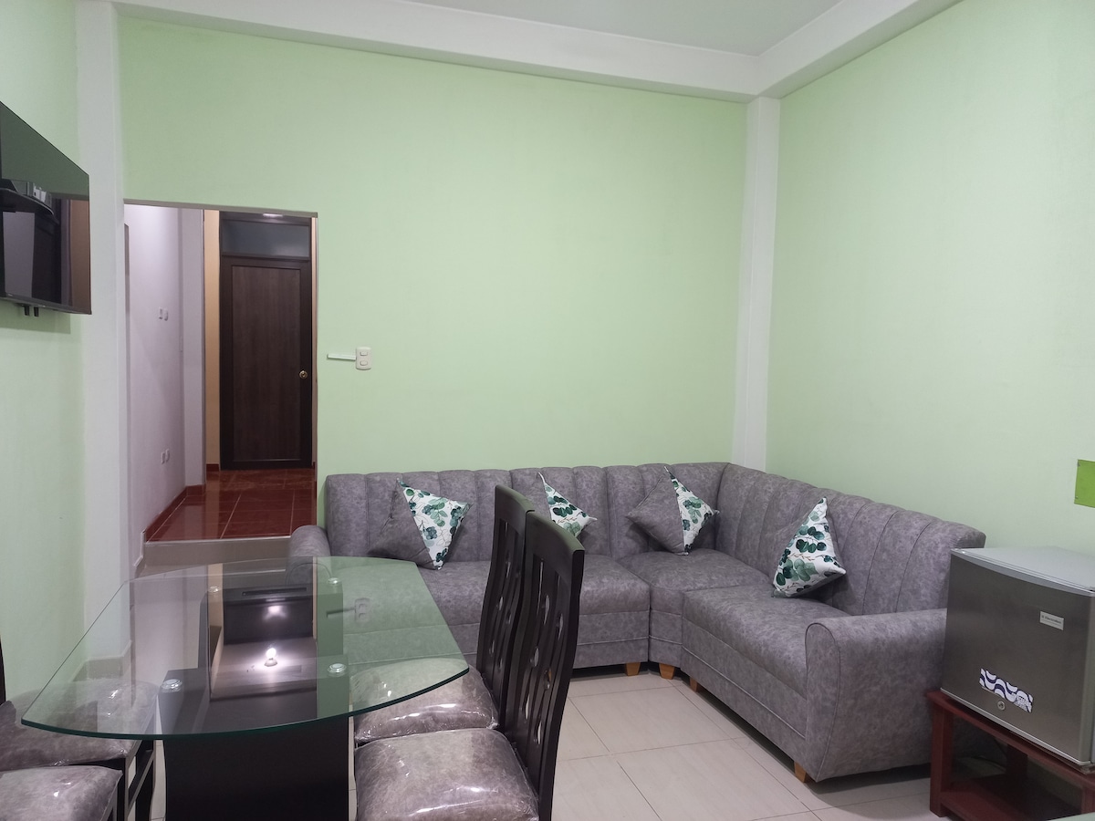 Casa familiar, ubicada a 5 minutos del centro de la ciudad, zona totalmente tranquila, acceso independiente en 1er piso acogedor amplio de 150 mts, ideal para hospedarse con familiares fuera del bullicio, asegurándote un descanso placentero, seguridad e higiene. capacidad 5 huéspedes, en caso requieran mayor capacidad se puede considerar previa coordinación con el anfitrión hasta 2 huéspedes adicionales, máximo 7
