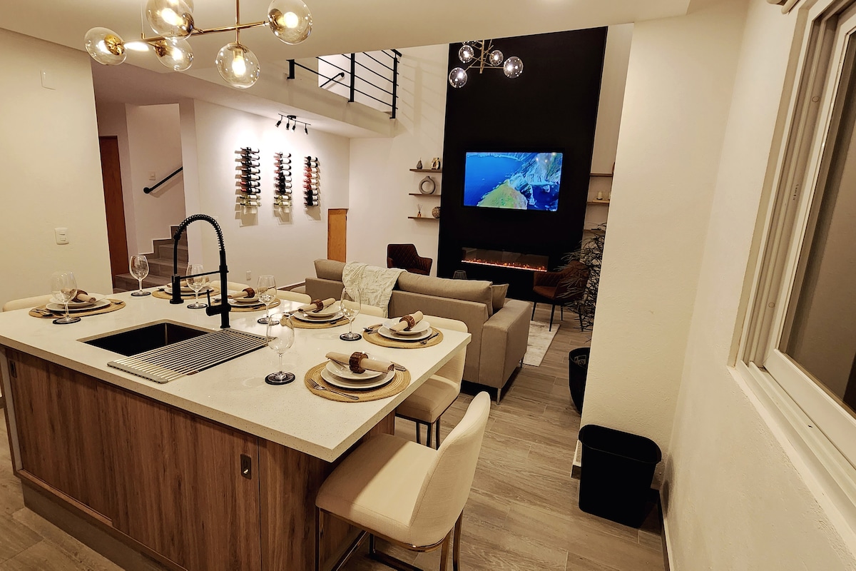 The loft is spacious, cozy, safe and its location is ideal. It has 3B/3BR, fireplace, modern kitchen, terrace with private jacuzzi, barbecue and a beautiful view of Juriquilla Santa Fe. All reservations include a courtesy drink. The loft opens with a code (no key is delivered to stays under 3 months).