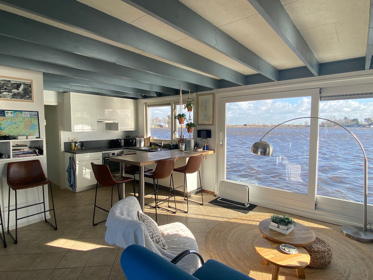 一艘美麗的船屋,位於Koppoel ,可直達Kaag。 在清晨的陽光下,享用一杯咖啡,欣賞Koppoel的美景。 從下午開始,陽光進入花園,在那裡您有美妙的空間和幾個陰涼的地方。 這是海濱真正獨一無二的地方! 很抱歉,不適合沒有遊泳文憑的兒童。 室內禁止吸煙,禁止舉辦派對和攜帶寵物。