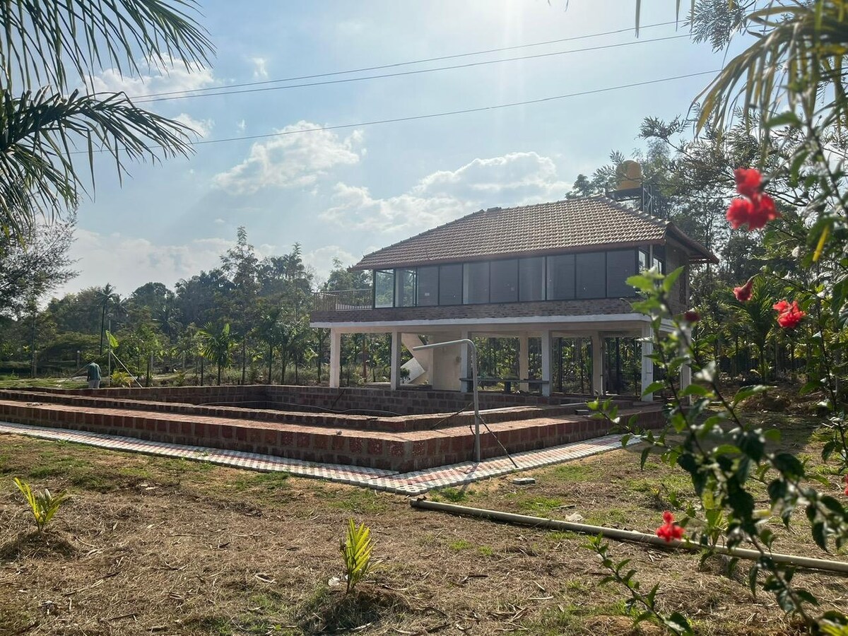 Set on a peaceful 10-acre farm at the confluence of two rivers, our heritage farmhouse offers a calm countryside escape surrounded by plantations, crops, and lush greenery. Enjoy the private lake with raft rides, gentle farm life, and beautiful natural views. Perfect for families and friends looking to relax, reconnect, and unwind. Located just 4 km from the popular hill viewpoint of Kurumbalakotta in Wayanad.