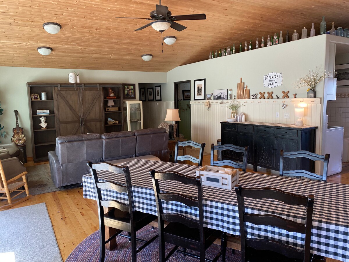 在這間全新建造的牧場風格房屋中,與全家人一起放鬆身心。 這個度假屋沒有電視機或 Wi-Fi。 公寓有兩間臥室、一間配備洗衣機的衛浴、全功能廚房和客廳。 整體裝潢雅致,以西方主題為主。 來住幾晚,或放鬆一整週! 城裡有一家 Subway 餐廳和兩家小咖啡館,供飢腸轆轆的人用餐,或者在當地雜貨店或 Dollar General 購物後,可以帶著野餐去 Badlands。 所有商家都很早就打烊了。