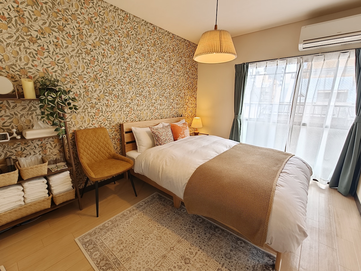 瓦町站 3 分鐘 | 最多 5 人 | 寬敞 62 ㎡ 獨立房源 | Simmons 床 | 中世紀現代風格
