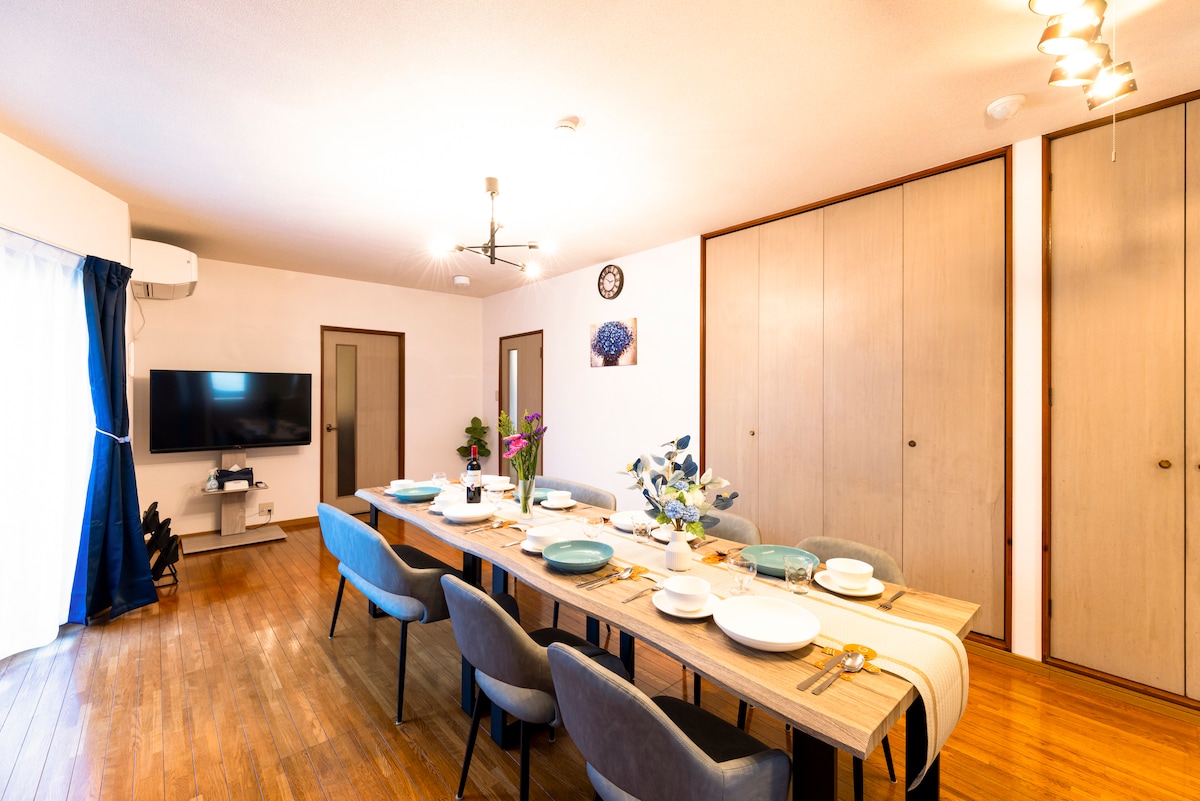 Perfect for Families & Groups! Stay near famous hot springs and enjoy relaxing soaks. Free parking is available. A covered BBQ area (¥1,000) lets you grill even on rainy days. The entire house is for one group only, ensuring privacy and comfort. Surroundings: Surrounded by nature with shrines, parks, fishing, bird-watching, and hiking. At night, enjoy a star-filled sky. Totoro is next door—a delight for kids and Ghibli fans. Walks with Kirishima mountain views are also nearby.