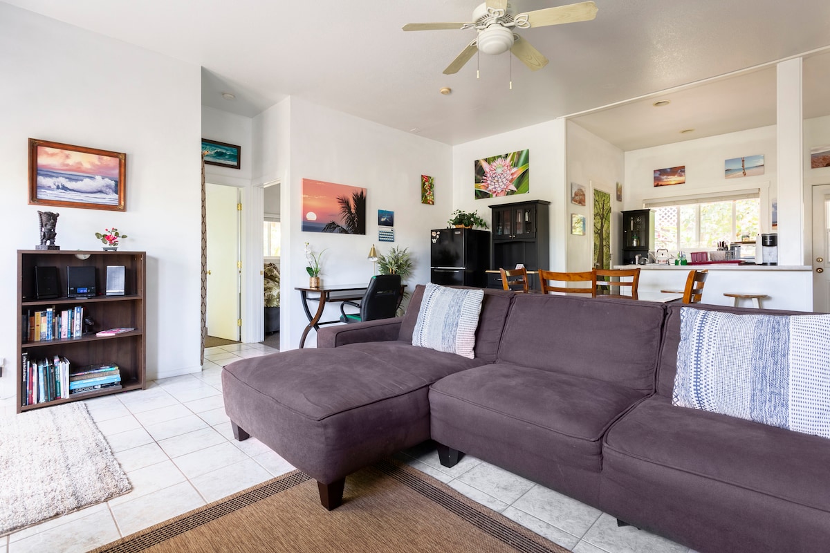 Aloha,歡迎來到位於夏威夷大島Kailua Kona的大型私人套房。 入住位於科納極佳位置的安靜住宅區,享受島上提供的所有設施! 步行前往魔法沙灘(Magic Sands Beach),晚上欣賞美麗的科納日落! 免費使用海灘物品:沙灘椅、冰箱、浮潛裝備、衝浪板和海灘傘。 中央位置,靠近餐廳、雜貨店和商店。現場停車位。
