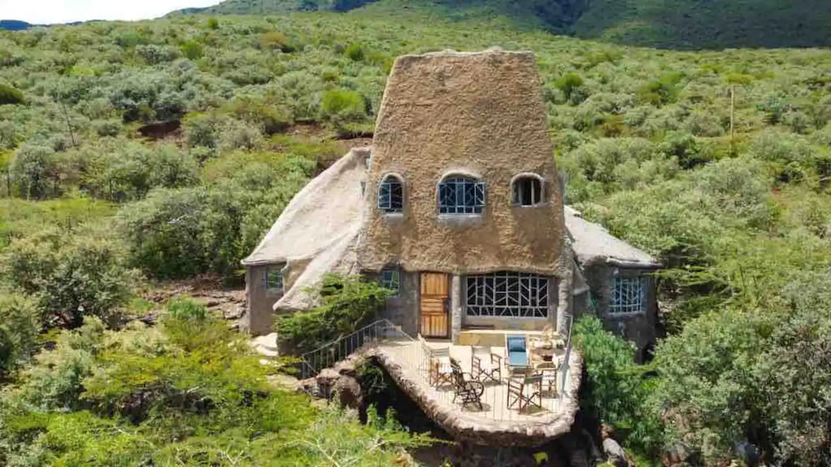 Enjoy the sounds of nature when you stay in this unique cozy, cuddly, roomy yet compact underground single-bedroom house with a sitting room and a kitchenette Finished with a fuzzy white paint finish and is completely sound-protected from the outside. It has three outdoor places with unique parasols, and a shaded swing and the third offers a rocky table and three rock seats Please note: Due to heavy rains, a 4-wheel drive vehicle is required to access the location.