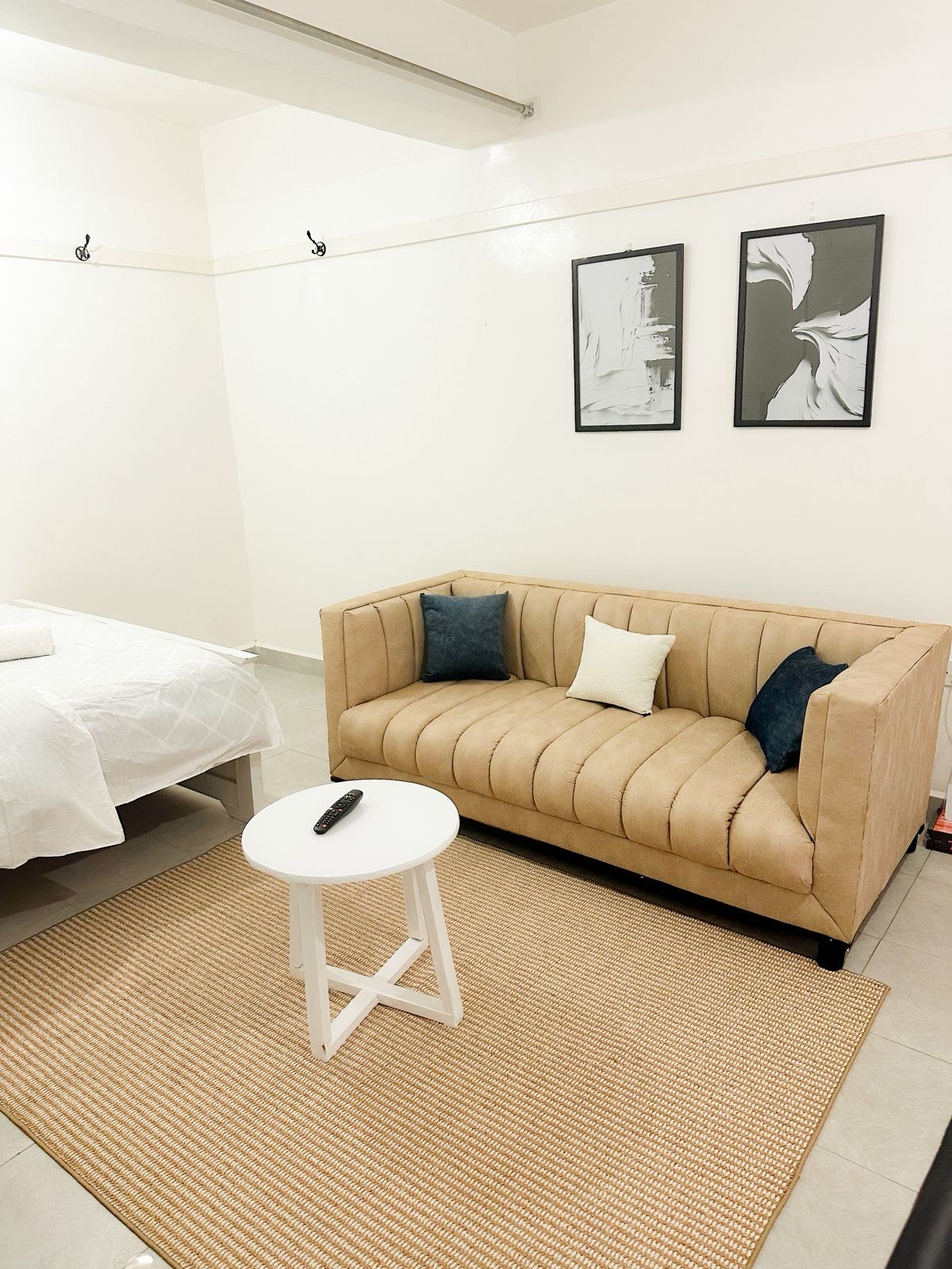 Welcome to this stylish and chic apartment at Kisumu Terrace Apartments in Mamboleo, perfect for business travelers, couples, or solo adventurers. Enjoy a serene ambiance with modern decor, smart entertainment, and a private balcony overlooking lush greenery. Features & Amenities: 1. Spacious living area with Smart TV 2. High-speed WiFi 3. Elegant African-inspired decor 4. Fully equipped kitchen for home-cooked meals 5. Cozy balcony seating with beautiful views 6. Secure & quiet location
