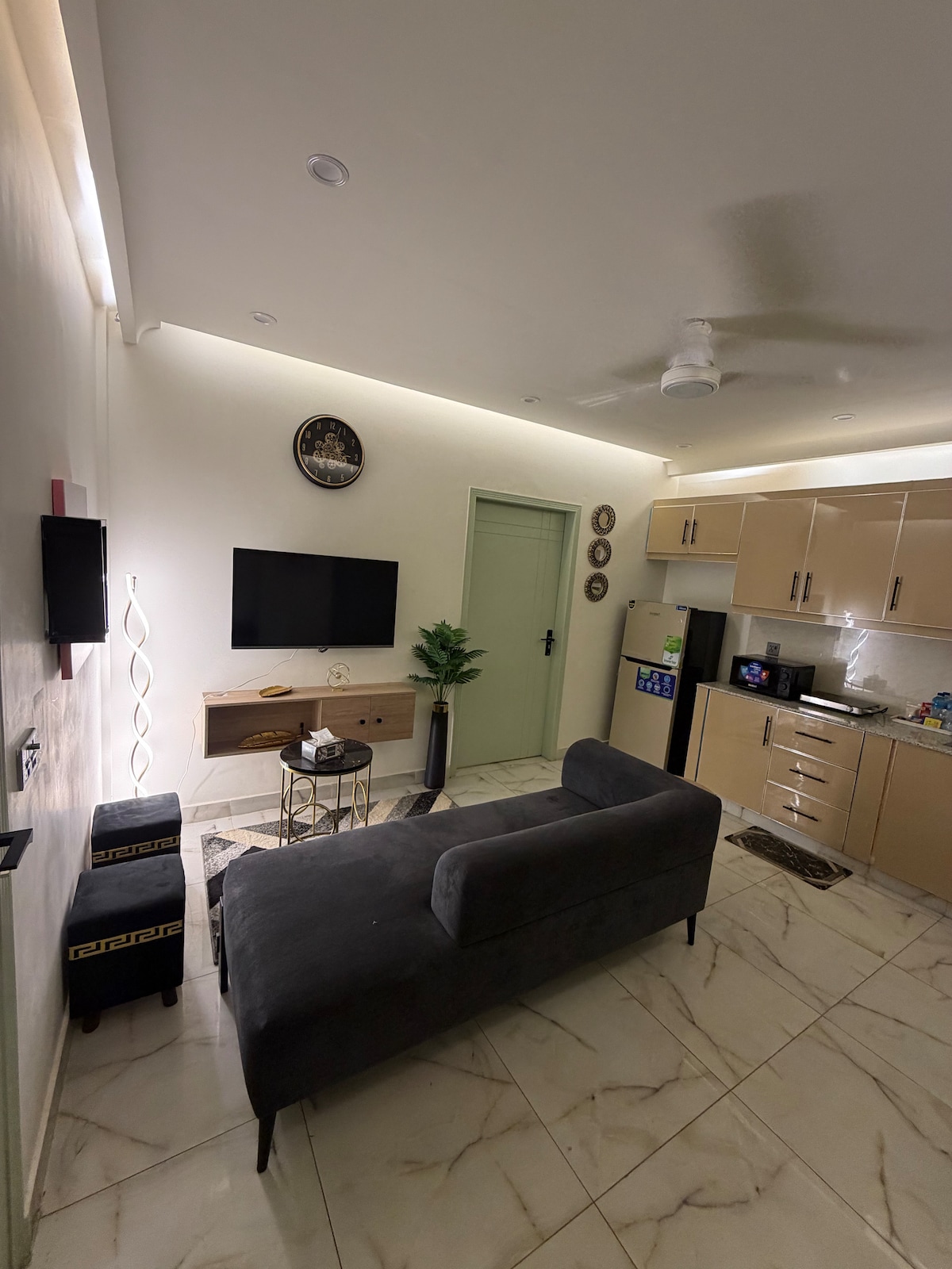 歡迎來到位於拉合爾市中心Jail Road的Shahzaib家 這間時尚的1BHK提供舒適的臥室、現代化的客廳、設備齊全的廚房和兩間浴室,讓您放鬆入住。 非常適合情侶、獨自旅行者或小家庭入住。 享受快速 Wi-Fi、智慧電視、UPS、空調和 24 小時熱水。 距離地鐵和重要市場僅幾分鐘路程。非常適合商務和休閒。 注意:這是一個4樓公寓,沒有電梯,很好的運動,不是嗎?