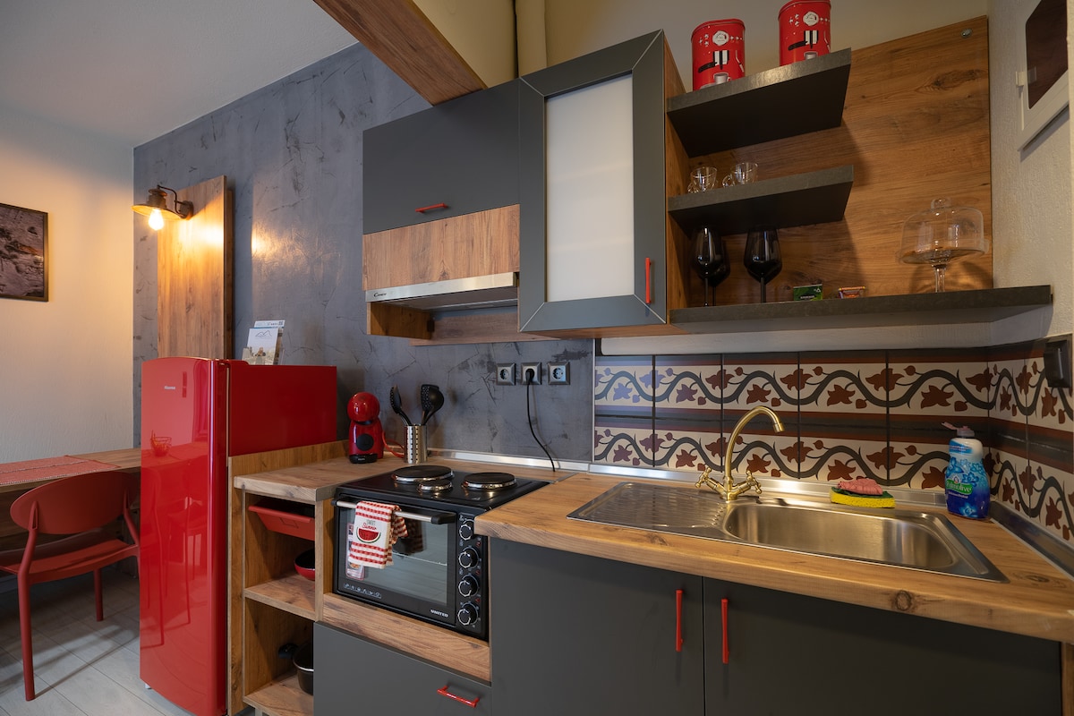 Enjoy your stay at our cozy, stylish and comfortable apartment located in the heart of Kalabaka! This newly renovated space is perfect for a group of friends, families or couples looking for a peaceful stay and can comfortably accommodate up to 6 people. It includes 2 bedrooms, 1 living room, 1 bathroom, a fully equipped kitchen and a storage room and has direct access to our lovely garden where you can enjoy your coffee or meal. Easy access to all essential shops and bus stops for Meteora.
