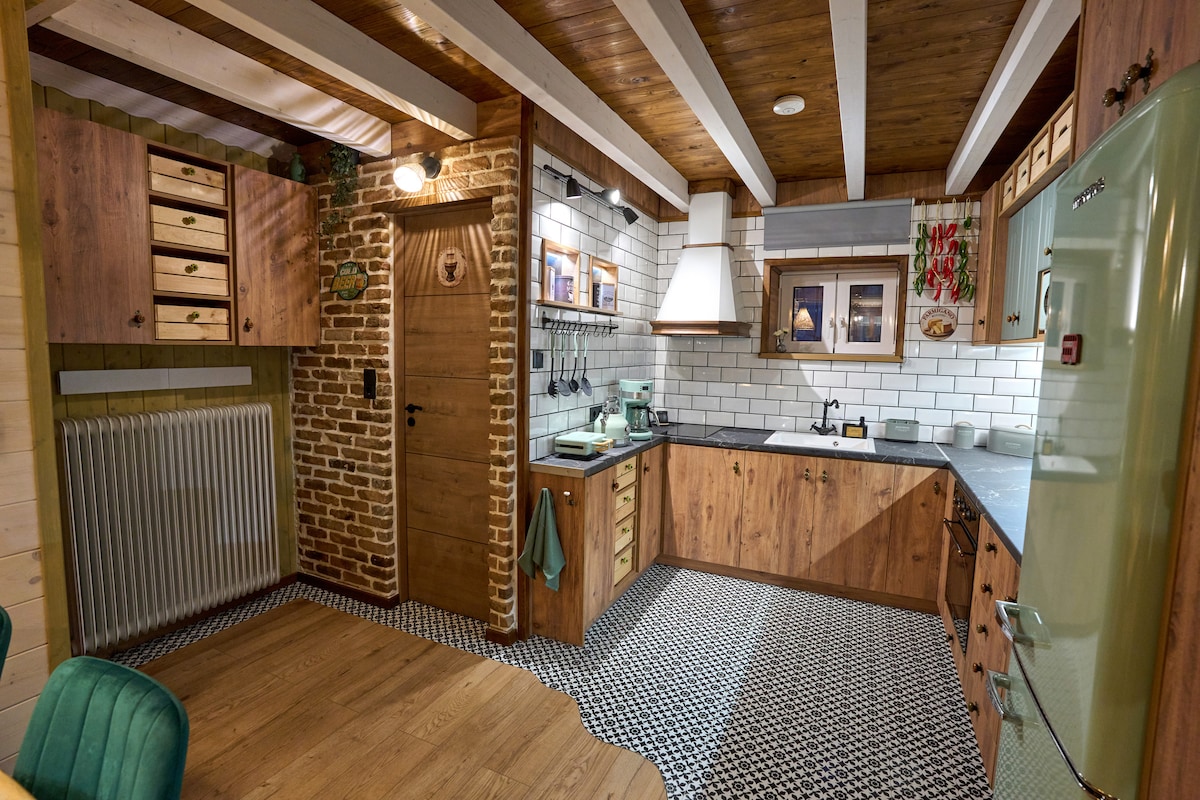 An independent and traditional little house located in the center of Kalambaka, very close to Meteora — even within walking distance. It features a shared terrace where you can relax, one bedroom with a double bed (ideal for couples), a living room with a sofa and dining table, a fully equipped kitchen, and a bathroom with a shower and all the necessary amenities. A warm and tidy space where you can truly feel at home!