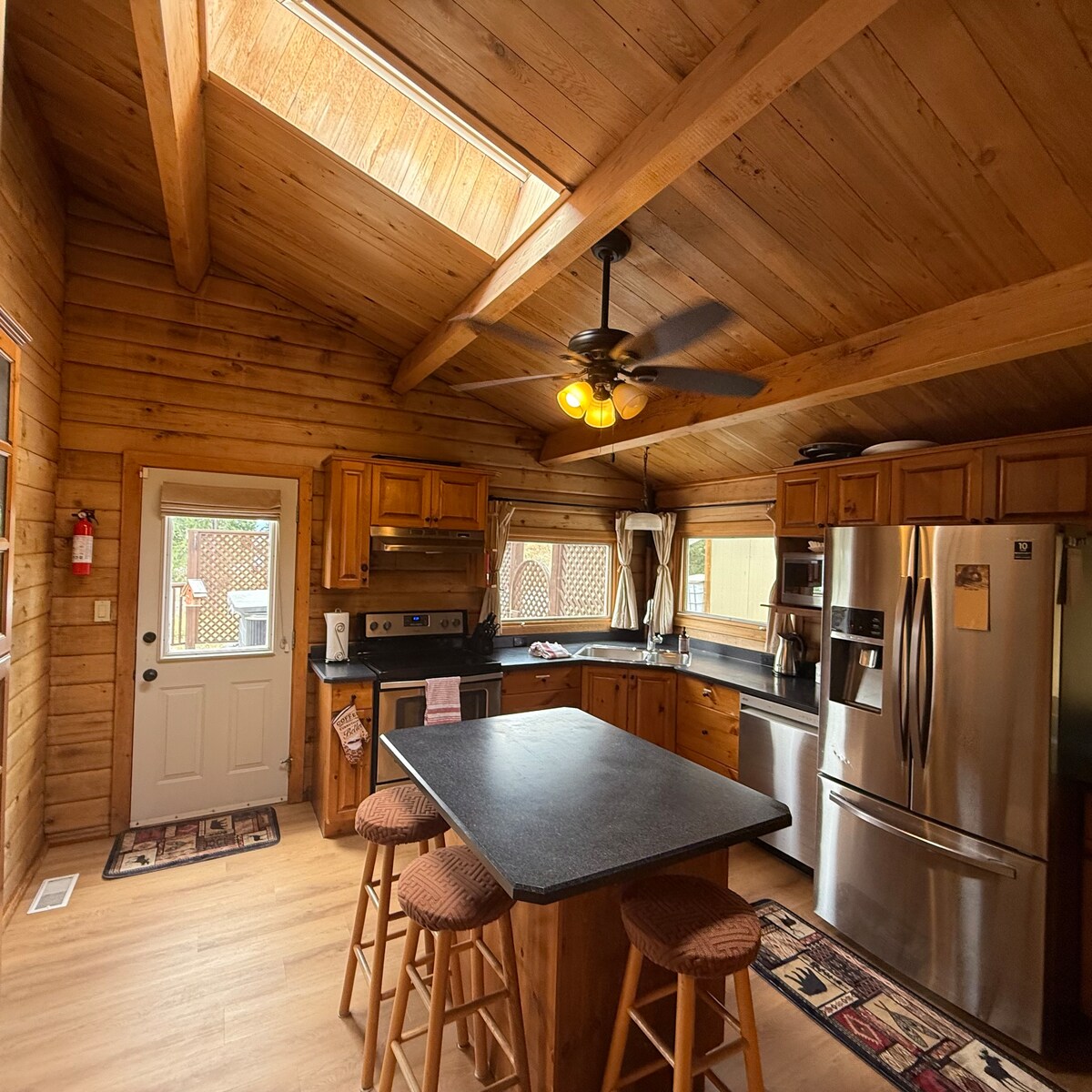 在我們位於基洛納的私人湖濱小木屋中放鬆身心,為您和整個家庭提供完美的度假。 在寬敞的露臺上欣賞令人驚嘆的湖景,火坑可俯瞰水景。 空調小木屋提供2張牀、可供額外房客使用的牀位和2間全功能浴室,讓您感到舒適。 位於門禁社區內,您的安全是我們的首要任務。 此外,附近還有熊溪省立公園( Bear Creek Provincial Park )的徒步道。 千萬不要錯過這個田園詩般的度假勝地!