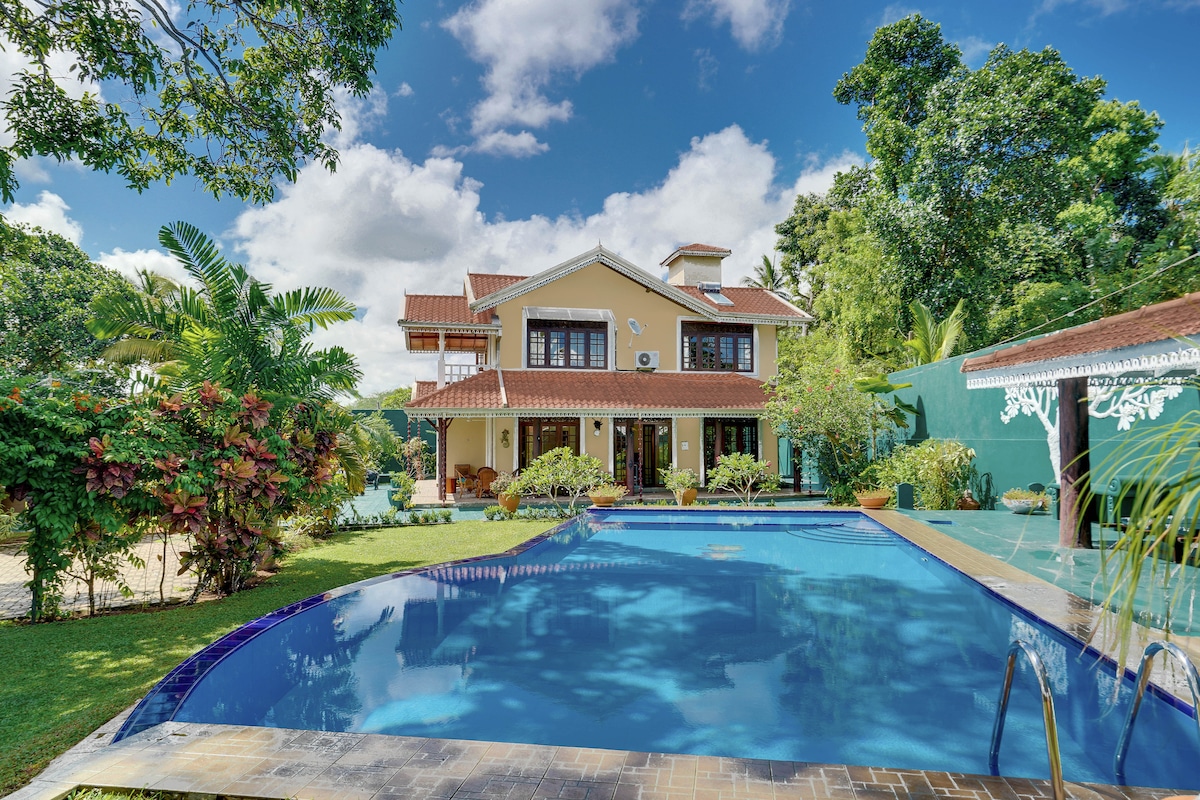 新冠肺炎疫情的旅遊局和安全認證。 坐落在距離大海150公尺的寧靜私人區域。 我們提供空調、熱水、茶水間、瓦斯、燒烤、洗衣機、冰箱、私人泳池和按摩浴缸、機場接送將收取@便宜的價格。 (注意:您可以使用花園和整個樓上)。距離Bentota/Madu River 6公裏。45分鐘即可抵達Hikkaduwa、Galle Fort & Unawatuna、水上運動、海龜農場等。 除非特別要求,否則不提供早餐(每人5美元)。
