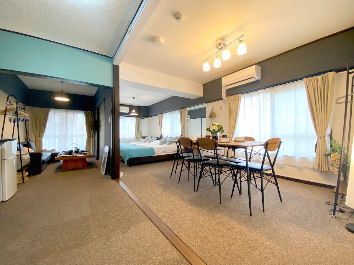 步行 2 分鐘即可抵達 JR Kamata 站。 在餐飲大樓樓梯頂端,是一個隱藏在城市中的度假村空間。 整個寬敞的1樓(60㎡)是私人設施,翻新、美麗且設備齊全。 客廳以海灘為主題設計,臥室以森林為主題,房間和屋頂有開放式陽台。 東面和南面有大窗戶,讓它成為明亮和開放的空間。 臥室有一張Simmons雙人床床墊,確保您睡個好覺。 75英寸大電視、音響、可與鏡球一起享用的卡拉OK、Delonghi自動咖啡機、配備廚具和碗碟的廚房、洗衣機和烘乾機以及其他設施都是最新且完整的。 最多可入住10位房客,非常適合家庭和朋友入住。 搭乘巴士20分鐘即可抵達羽田機場,搭乘火車10分鐘即可抵達品川站(新幹線),交通便利。 *距離澀谷23分鐘,距離新宿30分鐘 位於東京南部最繁忙的市中心區之一蒲田,周圍有數百家美味且價格合理的餐廳、大型商業設施和獨特的商店。 從早上到深夜,您可以在「永不入睡的城市」充分享受東京的魅力。