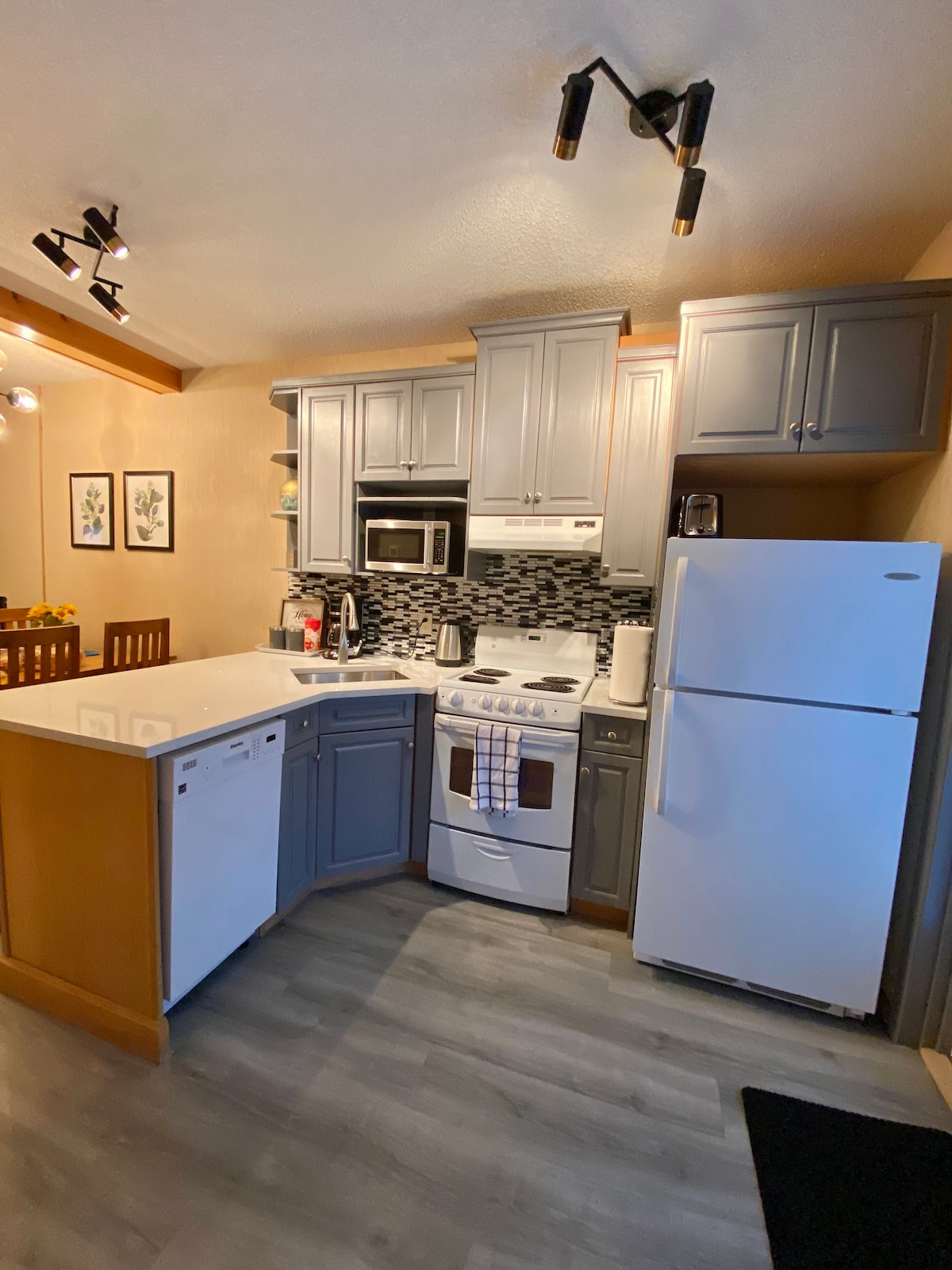 Blue Moose是一間新近翻修和裝潢的寬敞豪華一臥室公寓,配有加大雙人床和標準雙人沙發床。 2025年新增:主要浴室和廚房升級。 絕佳的地理位置 這座現代山區度假屋毗鄰原始山溪。 沿著溪畔自然步道,幾分鐘內即可抵達坎莫爾市中心,那裡有時尚商店、咖啡館、餐車以及休閒和高級餐廳。